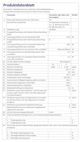 Einzelheiten: TCL 50V6B (127cm) Fernseher 50 Zoll, 4K UHD, Google TV