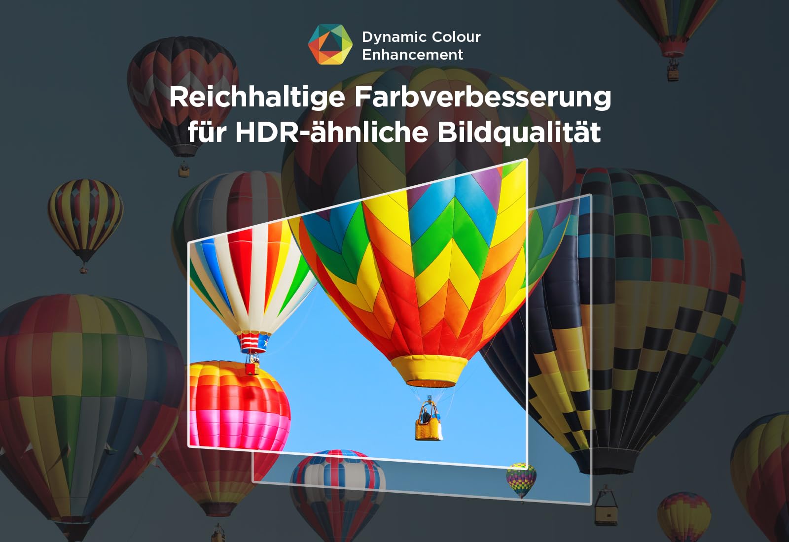 - Dynamische Farben: Dynamic Colour Enhancement. Eine reichhaltige Farbverbesserung durch HDR-Bildqualität