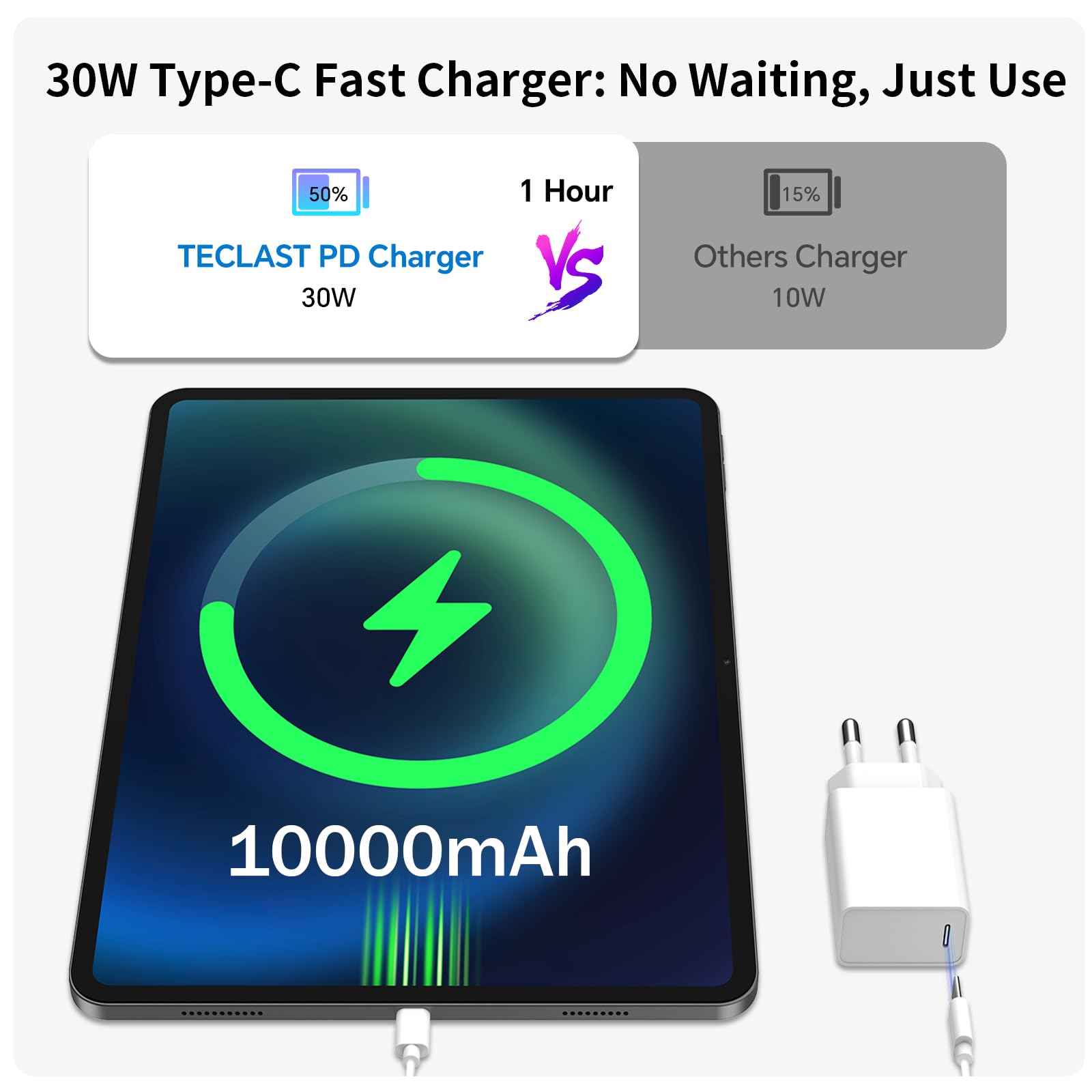 - GANZTAGS POWER - 10000 mAh Akku für über 12 Stunden Nutzung. 30W-Schnellladung für schnelle Einsatzbereitschaft. Tablet mit LTE und Dual SIM Slot plus Dualband-WiFi/Bluetooth 5.2. Drahtloses Streaming auf Großbildschirme.