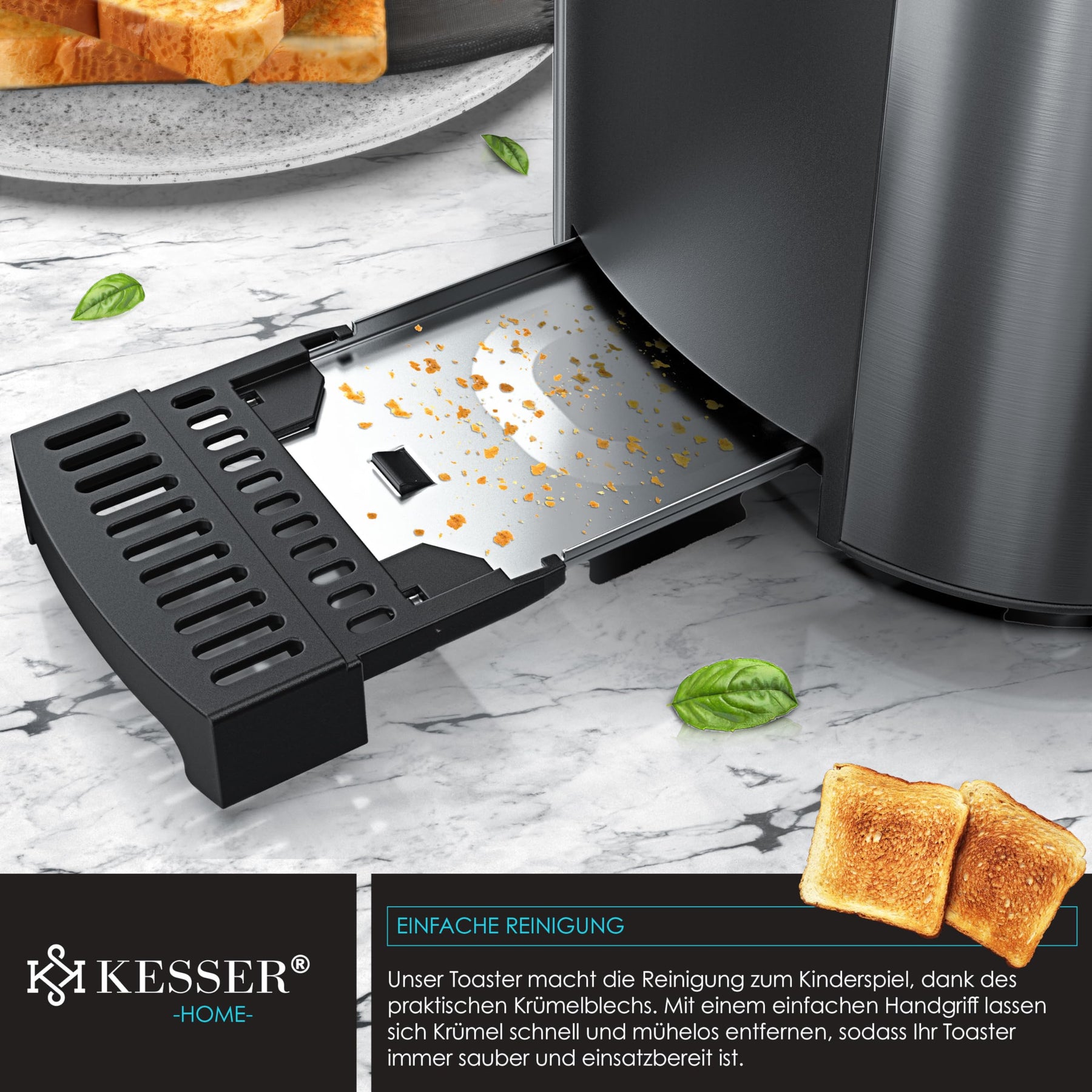 KESSER® Toaster mit Brötchenaufsatz, Automatik-Langschlitztoaster mit 6 Bräunungsstufen + Auftau- & Aufwärmefunktion, Abschaltautomatik, Liftfunktion, inkl. Krümelblech und Rezeptbuch Anthrazit