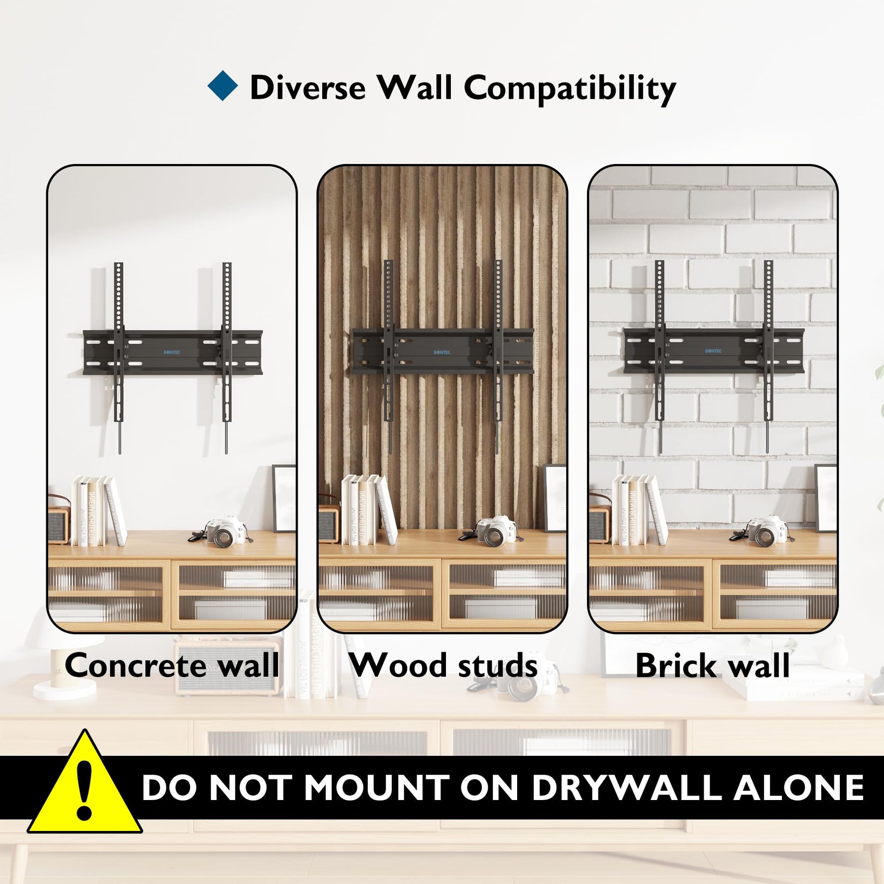 • Ultra Stark und Langlebig: Hergestellt aus verstärktem kaltgewalztem Stahl mit schwarzer Pulverbeschichtung, bietet diese Halterung extreme Robustheit und Langlebigkeit. Nicht geeignet für Gipskartonwände.