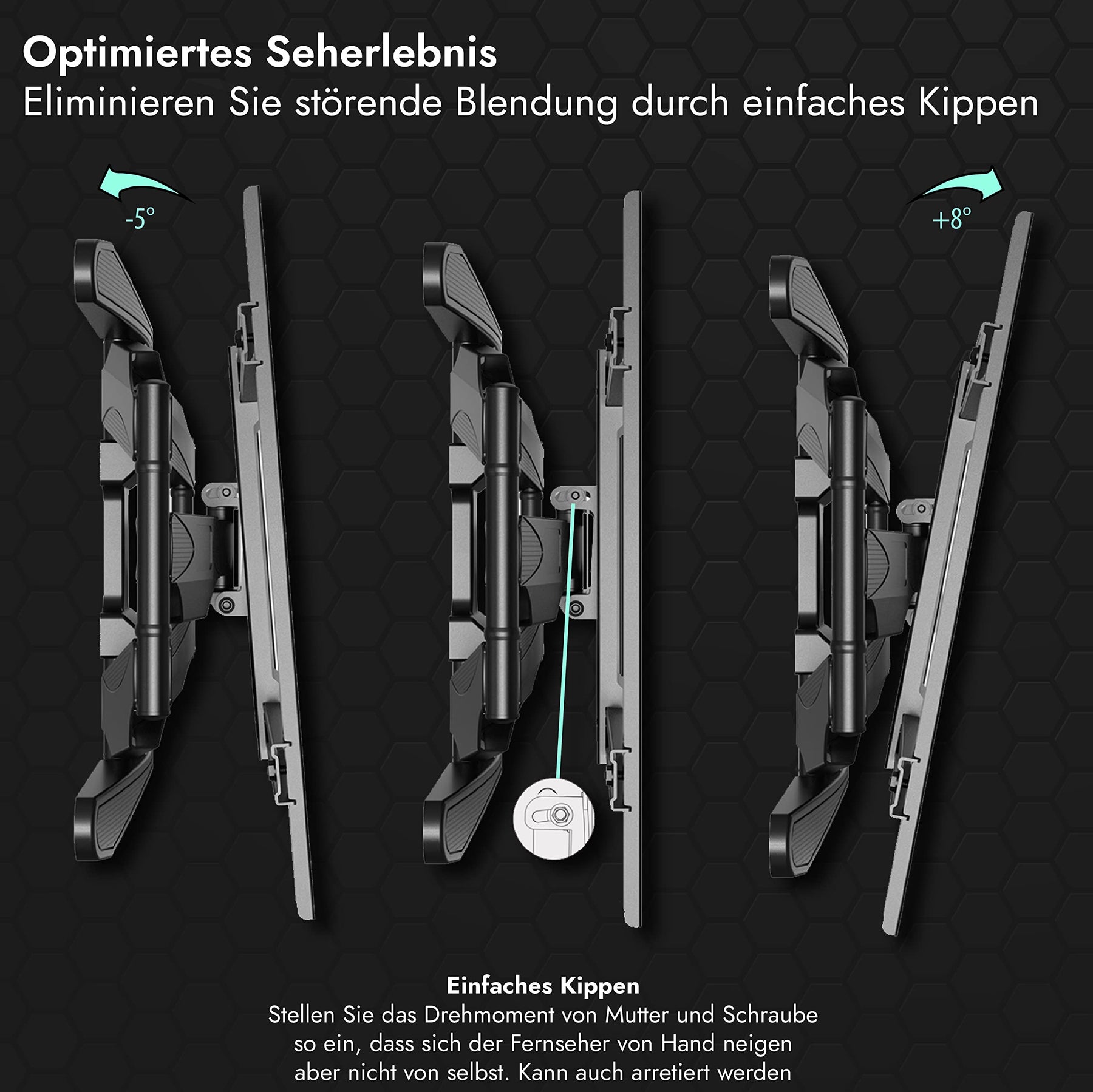 Vertikaler Neigungswinkel - Minus 5 Grad bis Plus 8 Grad = 13 Grad Gesamtneigungswinkel