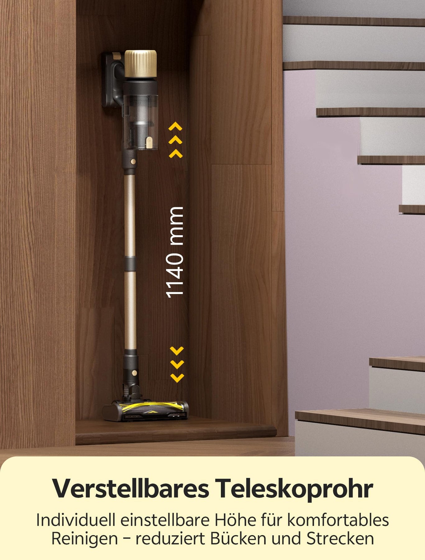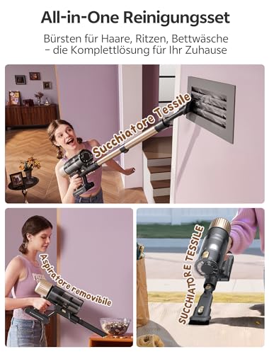 - 【180° DREHBARE BÜRSTE + TELESKOPSTIEL】Der Staubsauger mit höhenverstellbarem Teleskopstiel und flexibler 180°-Bürste erreicht mühelos Ecken, Möbel und Betten – für eine all-in-one-Reinigung ohne Kompromisse!