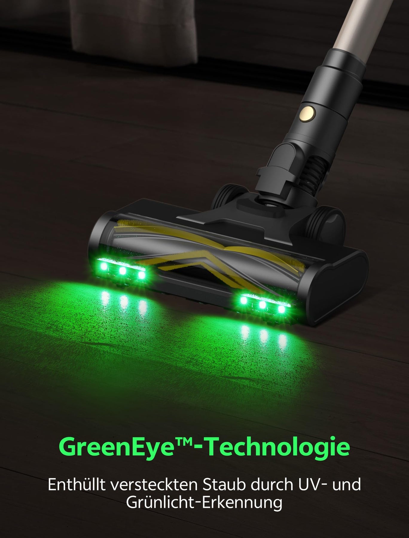 - 【GREENEye-TECHNOLOGIE: STAUB SICHTBAR MACHEN!】Die grüne Hochleistungslicht des Akkustaubsaugers enthüllt versteckten Schmutz (Teppiche, Sofas, Betten). Kombiniert mit 6-facher HEPA-Filtration (99,9%) für allergenfreie Sauberkeit bei voller Saugkraft!
