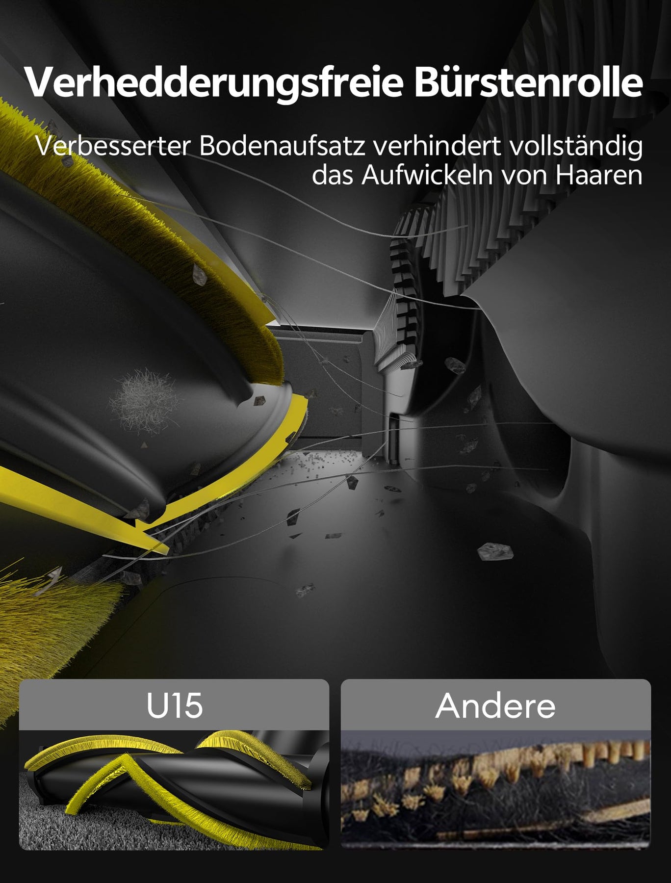 - 【4-IN-1 ANTI-HAAR-BÜRSTE,90% HAARFREI】Speziell für Tierhaare: Die tangle-free-Technologie des Staubsaugers verhindert 90% Bürstenverstopfungen und entfernt sogar große Partikel (bis 1,3 cm). 50% effizienter als herkömmliche Bürsten!