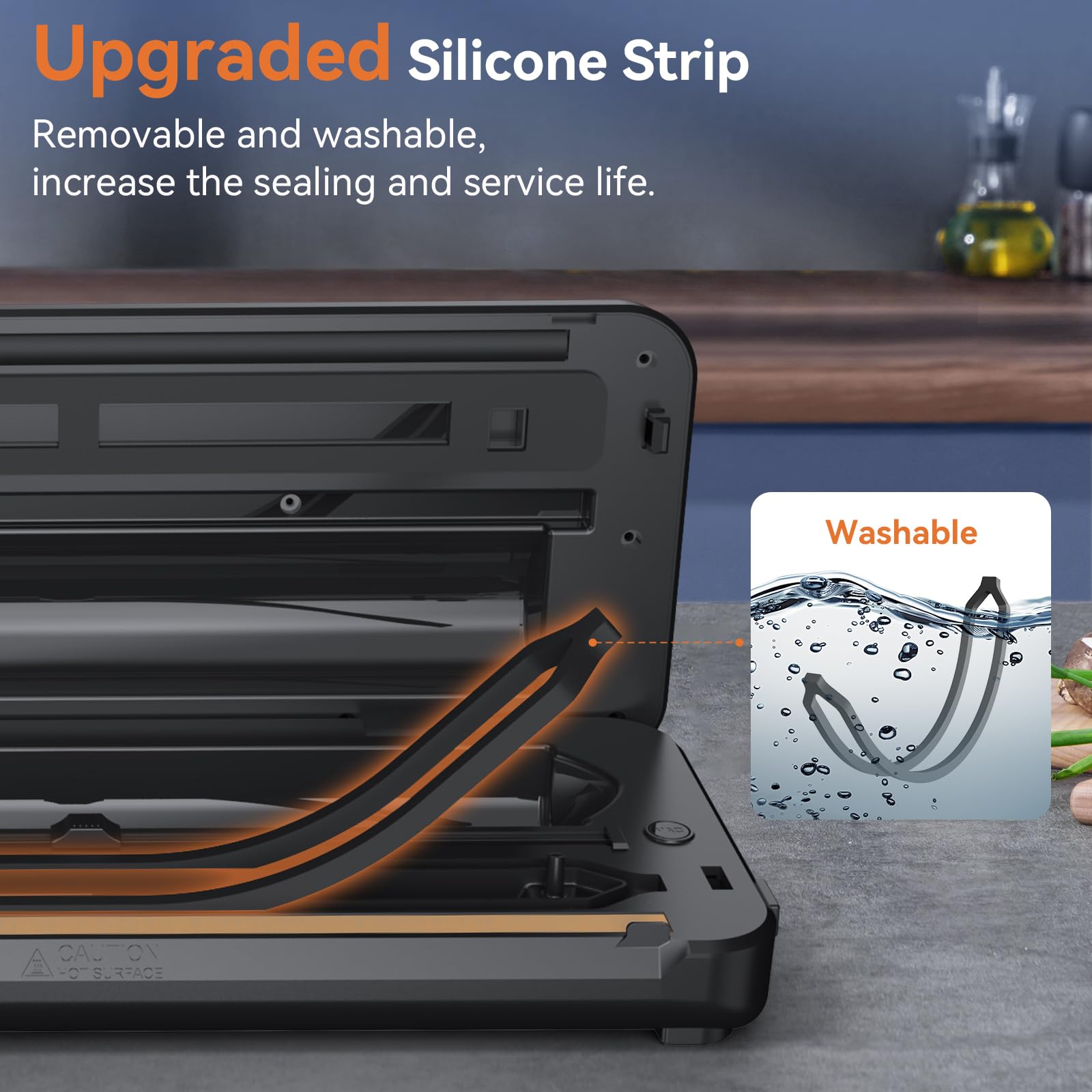 - 【12" Heizstreifen und verbesserte Silikondichtung】 Der 12"-Versiegelungsstreifen von unterstützt das Versiegeln von 3-5 Beuteln auf einmal und kann über 70 Mal hintereinander verwendet werden. Der verbesserte Silikonstreifen ist abnehmbar und waschbar und hat eine längere Lebensdauer und ist gesünder als die Schaumstoff-Versiegelungsstreifen anderer Hersteller. Darüber hinaus erleichtern die Außenseite aus Edelstahl und das ABS-Material das tägliche Abwischen und Reinigen