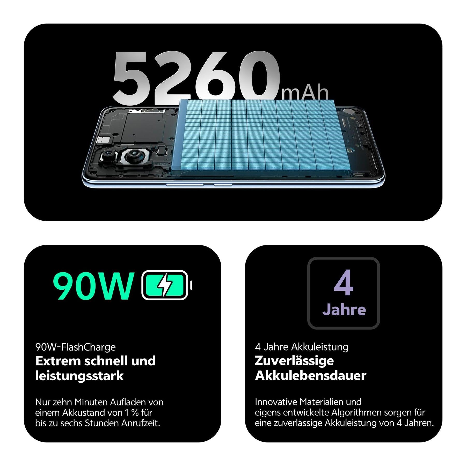 - 90W Schnellladung mit langlebigem Akku: Laden Sie das Smartphone in nur 10 Minuten von 1% auf 6 Stunden Telefongesprächsdauer mit 90 W FlashCharge auf. Fortschrittliche Technologie sorgt für eine Akkugesundheit von bis zu 4 Jahren, sodass das Smartphone langfristig zuverlässig bleibt.