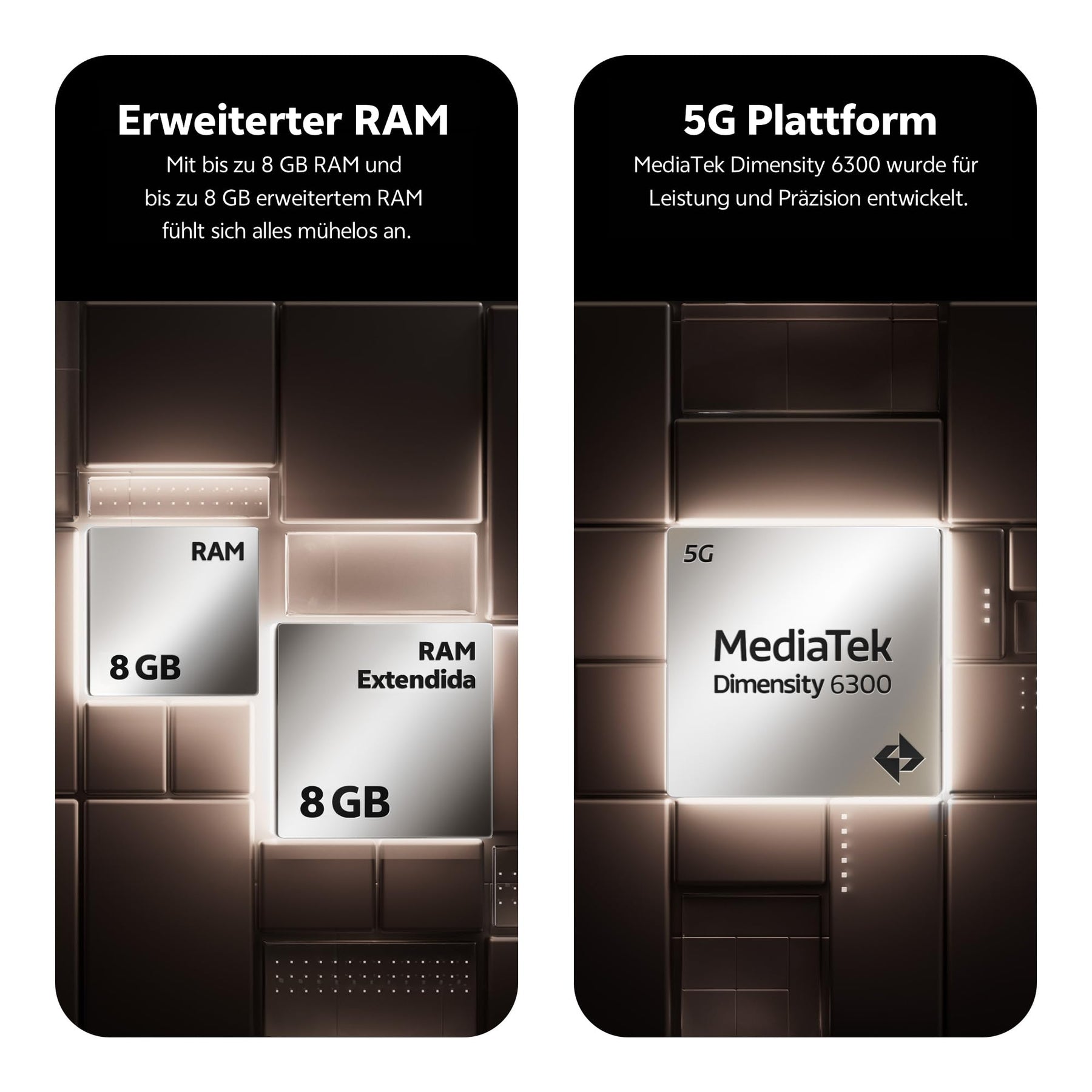 - 【 Studio-Qualität Aura Light Porträt + 50MP Sony IMX882 Kamera 】 Nehmen Sie atemberaubende Porträts mit dem Sony IMX882-Sensor und Aura Light auf, die eine intelligente Erkennung der Umgebungshelligkeit unterstützen. Wenn die Helligkeit einen bestimmten Schwellenwert erreicht, erinnert Sie das Gerät daran, das Aura Light einzuschalten. Zudem passt es die Helligkeit automatisch an, um basierend auf der Umgebungshelligkeit und dem Abstand die besten Ergebnisse zu erzielen – so gelingen Ihnen jederzeit und überall mühelos beeindruckende Porträtaufnahmen. Von goldenen Stunden bis hin zu atemberaubenden Landschaften – die Hauptkamera des V50 Lite stellt sicher, dass jedes Bild perfekt aussieht.