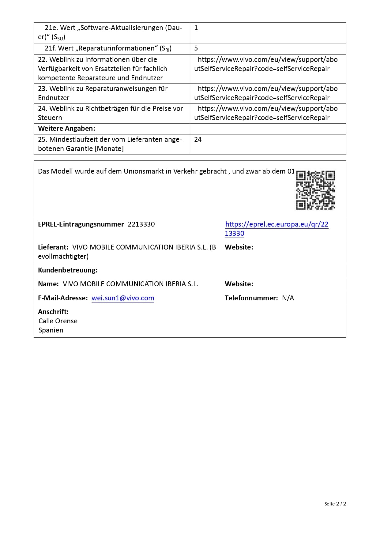 Modellnummer: vivo V50e 5G