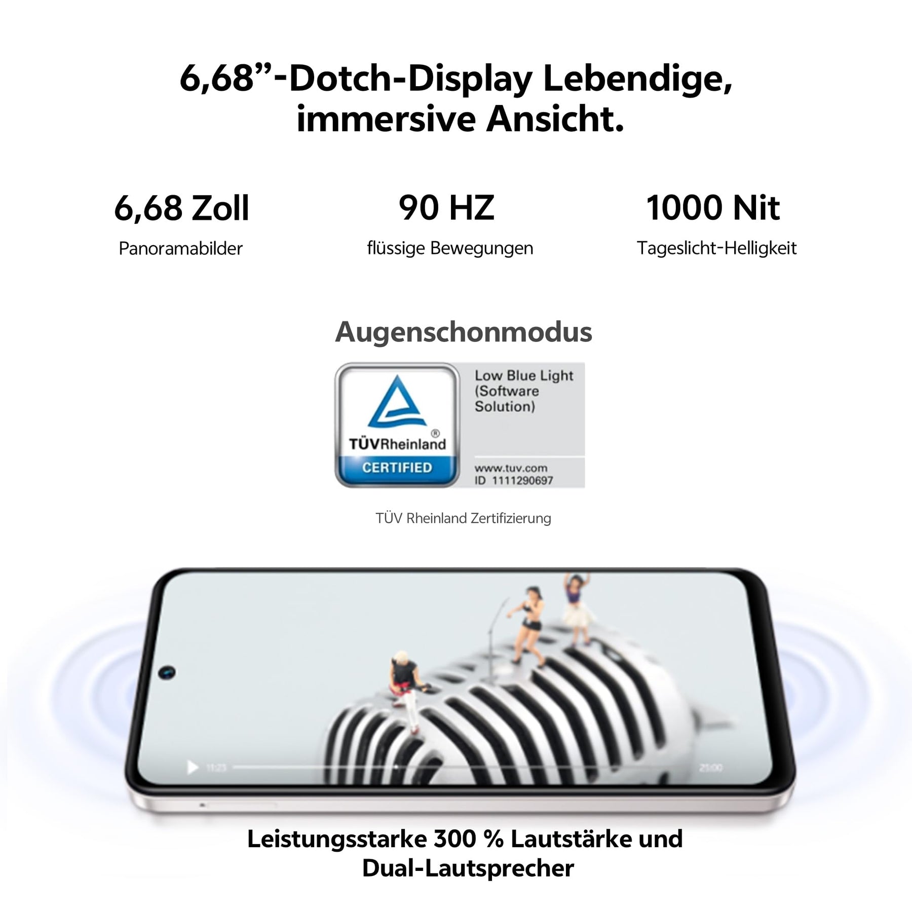 - 【 Lebendiges Display & Sound 】 Genießen Sie Filme oder Spiele auf dem 6,68″ Display mit bis zu 1000 Nits Spitzenhelligkeit, das selbst im Freien gut sichtbar bleibt. Dual-Stereo-Lautsprecher mit bis zu 300% Lautstärke-Boost liefern kraftvollen, immersiven Klang für Videos, Musik, oder Anrufe.