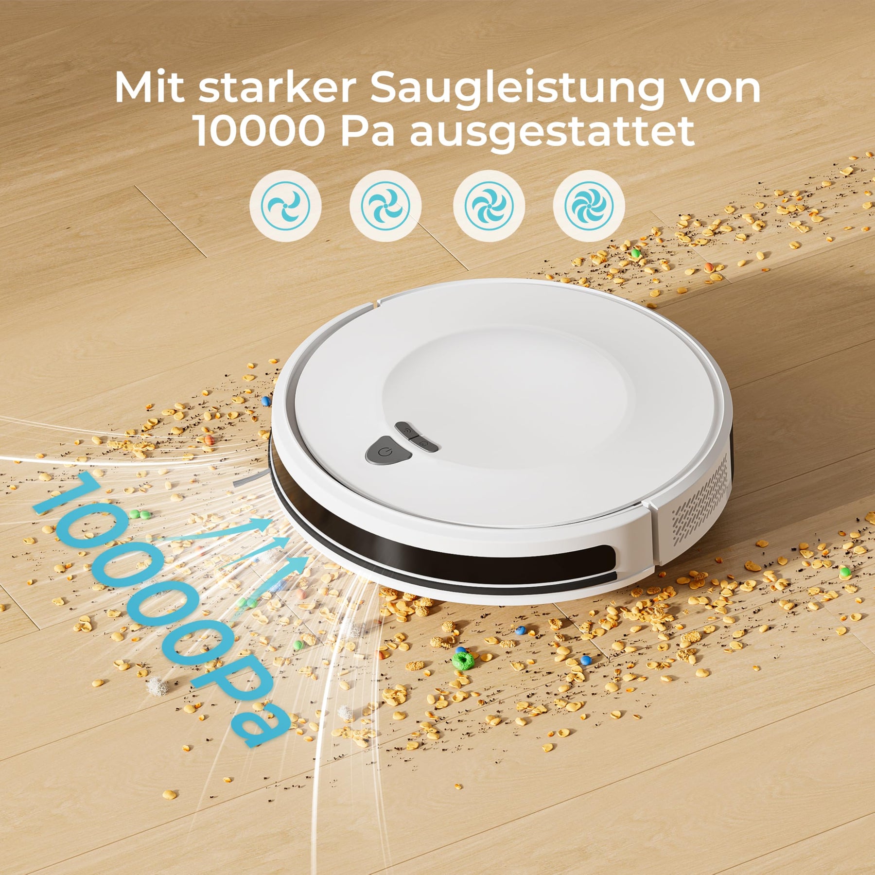 • 💨 𝐔𝐩𝐠𝐫𝐚𝐝𝐞-𝐒𝐚𝐮𝐠𝐤𝐫𝐚𝐟𝐭 𝐛𝐢𝐬 𝟏𝟎𝟎𝟎𝟎𝐏𝐚 – 𝐒𝐩ü𝐫𝐛𝐚𝐫 𝐬𝐚𝐮𝐛𝐞𝐫𝐞𝐫 𝐢𝐧 𝐣𝐞𝐝𝐞𝐦 𝐑𝐚𝐮𝐦 Die neue Upgrade-Version mit bis zu 10000Pa Saugkraft entfernt selbst hartnäckigen Schmutz, feinen Staub und Tierhaare mühelos – auf Hartböden wie auch auf Teppichen. Ohne Wischmodule wird die gesamte Motorleistung in reine Saugleistung umgesetzt. Das Ergebnis: starke, konstante Reinigung, ideal für Haushalte mit Haustieren, Kindern oder hohem Reinigungsbedarf.