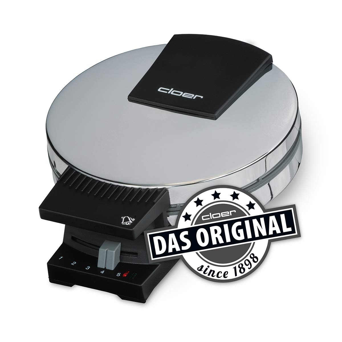 Einzelheiten: Waffeleisen 185 | Herzwaffel 16 cm | Fettarmes Backen durch Antihaftbeschichtung | Schwere Backplatten | Einfache Reinigung durch innen liegendes Scharnier und Fettauffangrille | Optische und akustische Fertigmeldung | Flexibles Scharnier für ein besseres Aufgehen der Waffel | Stufenlos wählbarer Bräunungsgrad mit Schieberegler | Platzsparende, auf den Griffen stehende Aufbewahrung | Kabelaufwicklung mit Steckerdepot | Edelstahlgehäuse | H = 8, 5 cm x B = 25, 5 cm x L = 20 cm | 2,4 kg, 230 V, 930 W