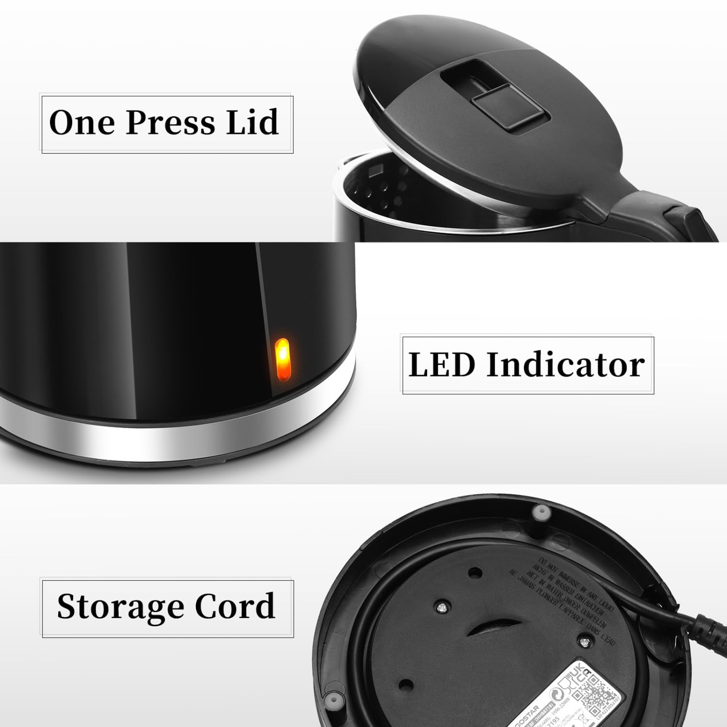 - 【Automatische Abschaltfunktion】- Dieser elektrische Wasserkocher verfügt über einen integrierten Trockenschutz und eine automatische Abschaltfunktion. Er schaltet sich automatisch aus, wenn das Wasser den Siedepunkt erreicht oder wenn kein Wasser im Wasserkocher ist.