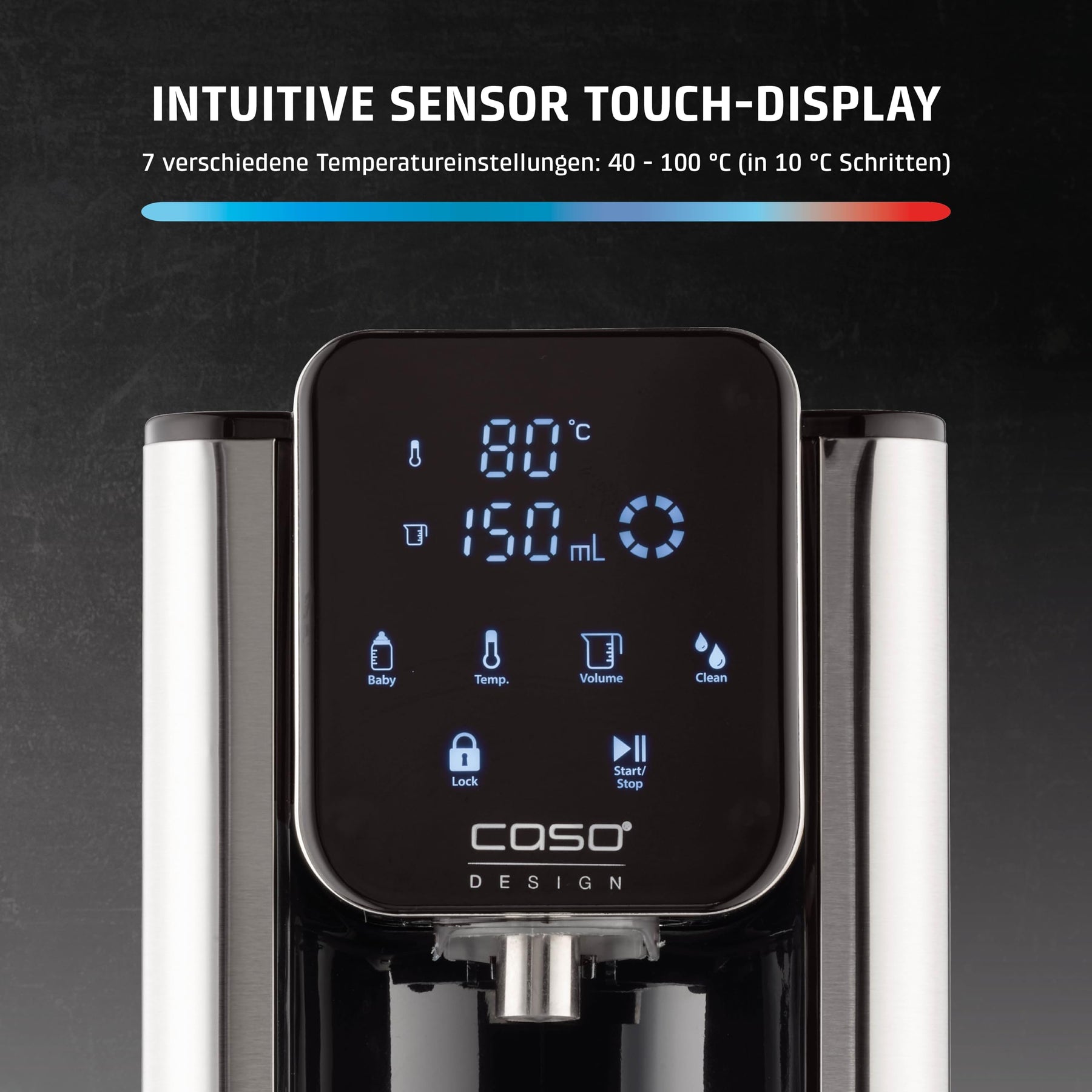 - 💧 7 TEMPERATUREN - In 10° C Schritten lassen sich bis zu 7 verschiedene Temperaturen zwischen 40 und 100°C einstellen. Per Direktwahltaste wird gradgenaues Wasser für Babynahrung erhitzt.