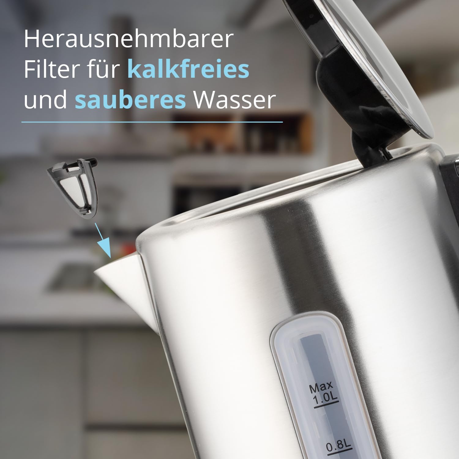 • 𝗠𝘂𝗹𝘁𝗶𝗳𝘂𝗻𝗸𝘁𝗶𝗼𝗻𝗮𝗹 💧 Die 360°-Basisverbindung ermöglicht ein komfortables Anheben und Abstellen. Der abwaschbare Kalkfilter ist herausnehmbar und sehr leicht zu reinigen. Der Wasserkocher verfügt über eine Abschaltautomatik.