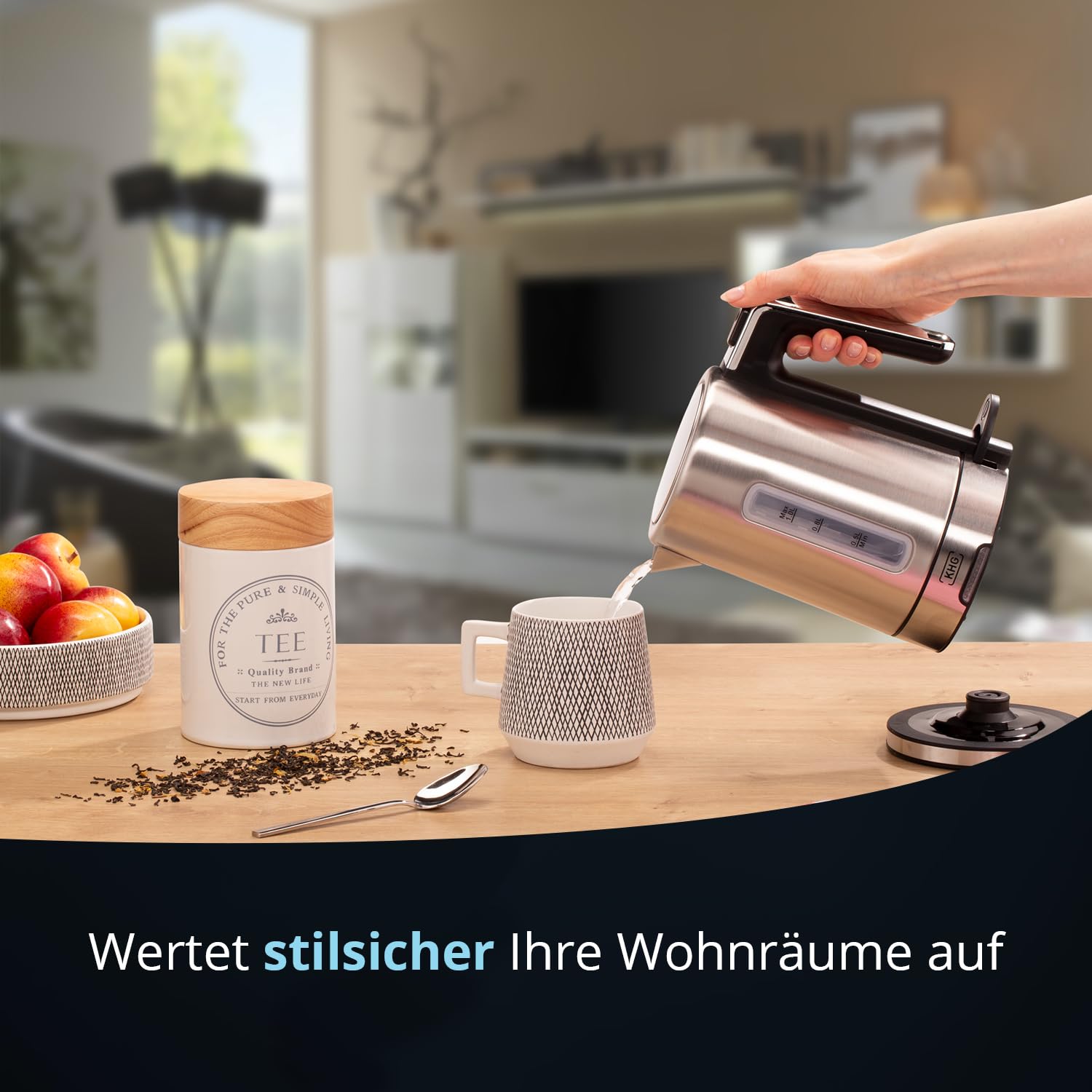• 𝗠𝗼𝗱𝗲𝗿𝗻 & 𝗣𝗿𝗮𝗸𝘁𝗶𝘀𝗰𝗵 💧 Mit dem Wasserkocher WK-105 ES von KHG können Sie bis zu 1 Liter Wasser zubereiten. Der Wassertank, können Sie direkt nach dem Öffnen des Deckels befüllen. Der Wasserkocher erhitzt das Wasser innerhalb von 3 Minuten.