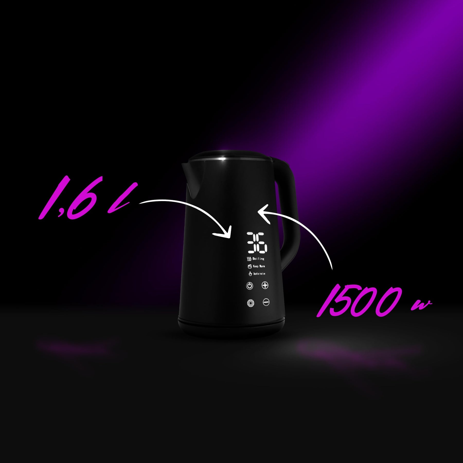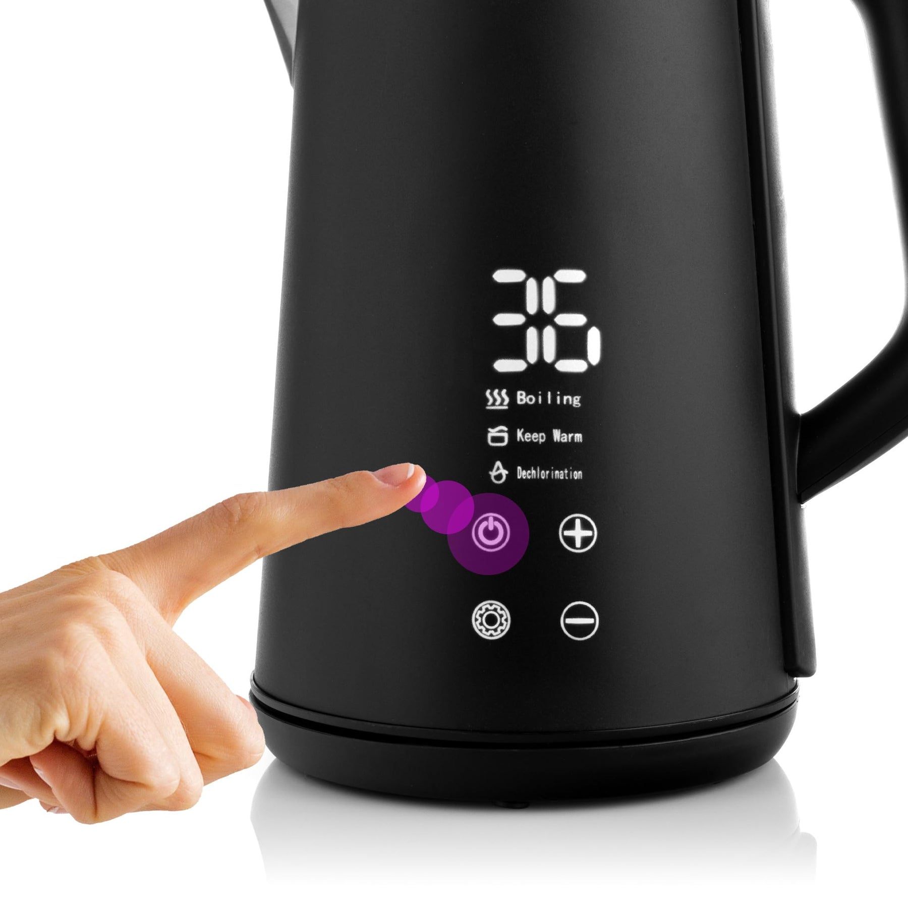 - ZWEI BETRIEBSARTEN - BOILING - zum Erhitzen/Kochen des Wassers auf eine bestimmte Temperatur und KEEP WARM - zum Halten der Temperatur - der Wasserkocher erhitzt das Wasser auf die gewünschte Temperatur und erhitzt es automatisch wieder auf diese Temperatur, sobald es abgekühlt ist.