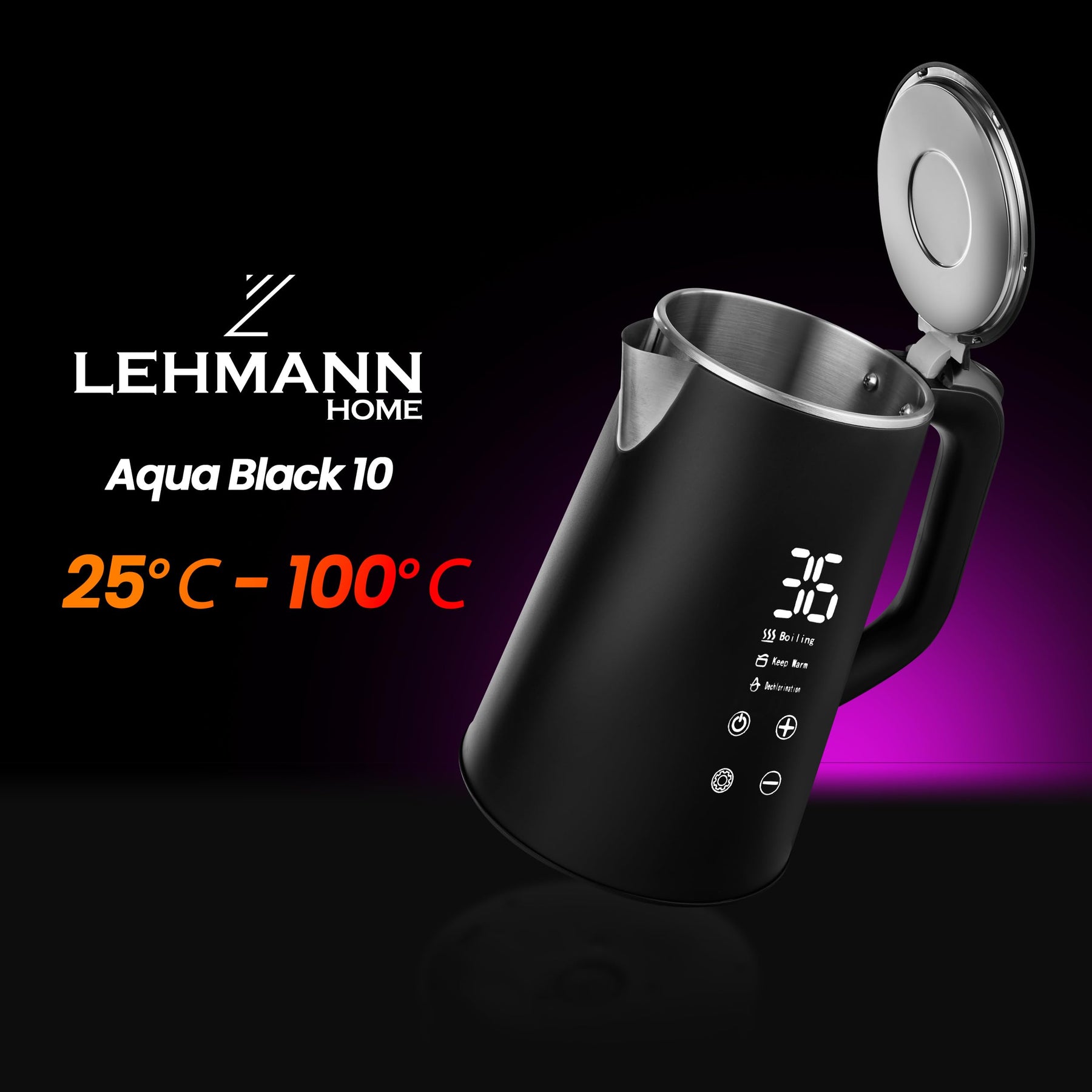 - TEMPERATUREINSTELLUNG - von 25℃ bis 100℃ in Schritten von 5℃. Dies spart Energie, da das Wasser nur auf die gewünschte Temperatur erhitzt wird, anstatt es zu überhitzen.