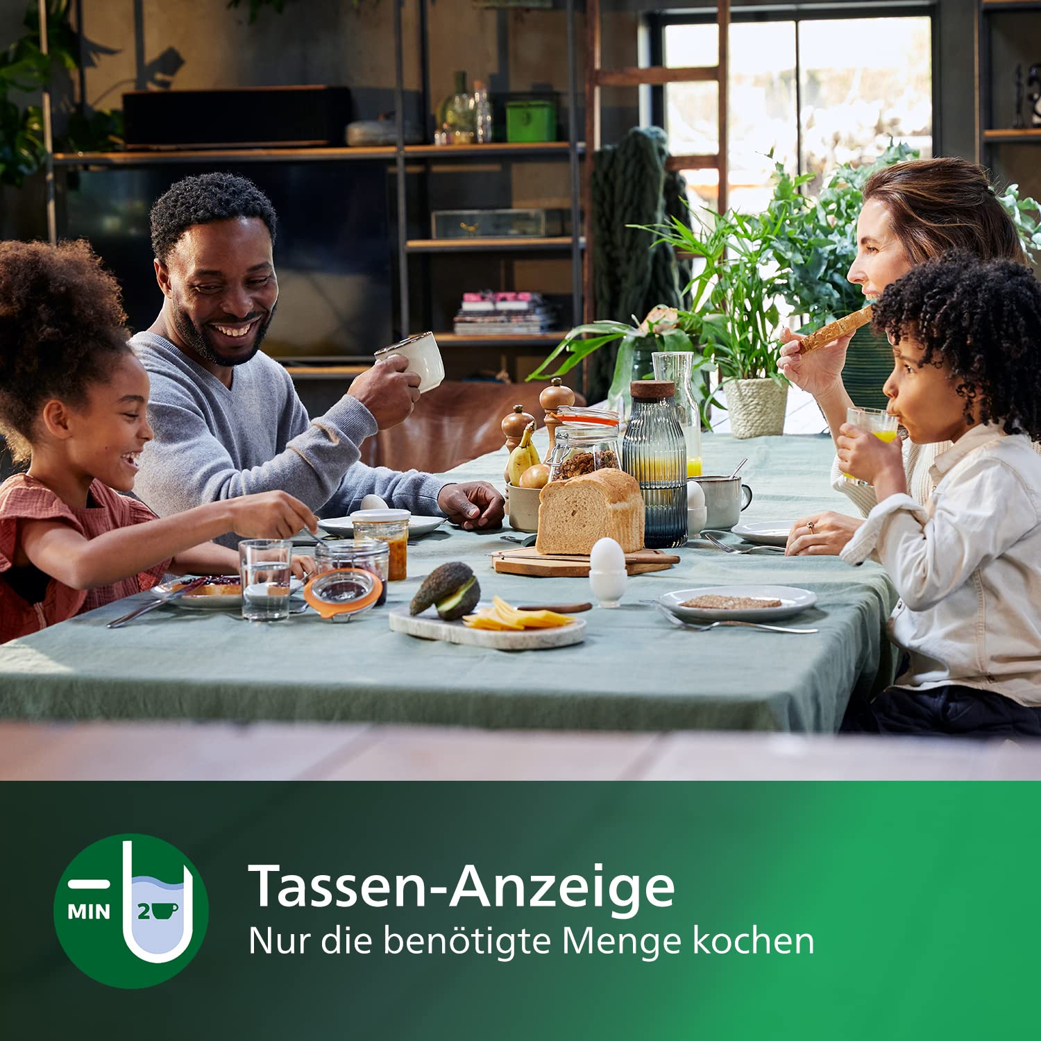 Einzelheiten: Mit dem Philips Eco Conscious Edition Wasserkocher wird Ihr Frühstück noch besser. Mühelose Zubereitung Ihres liebsten Morgengetränks im Handumdrehen. Gehäuse in modernem und minimalistischen Design, das mit 1,7 Litern ausreichend Fassungsvermögen für die ganze Familie bietet. Bei der Herstellung dieses Wasserkochers wurde besonders auf Sicherheit und Nachhaltigkeit geachtet.
