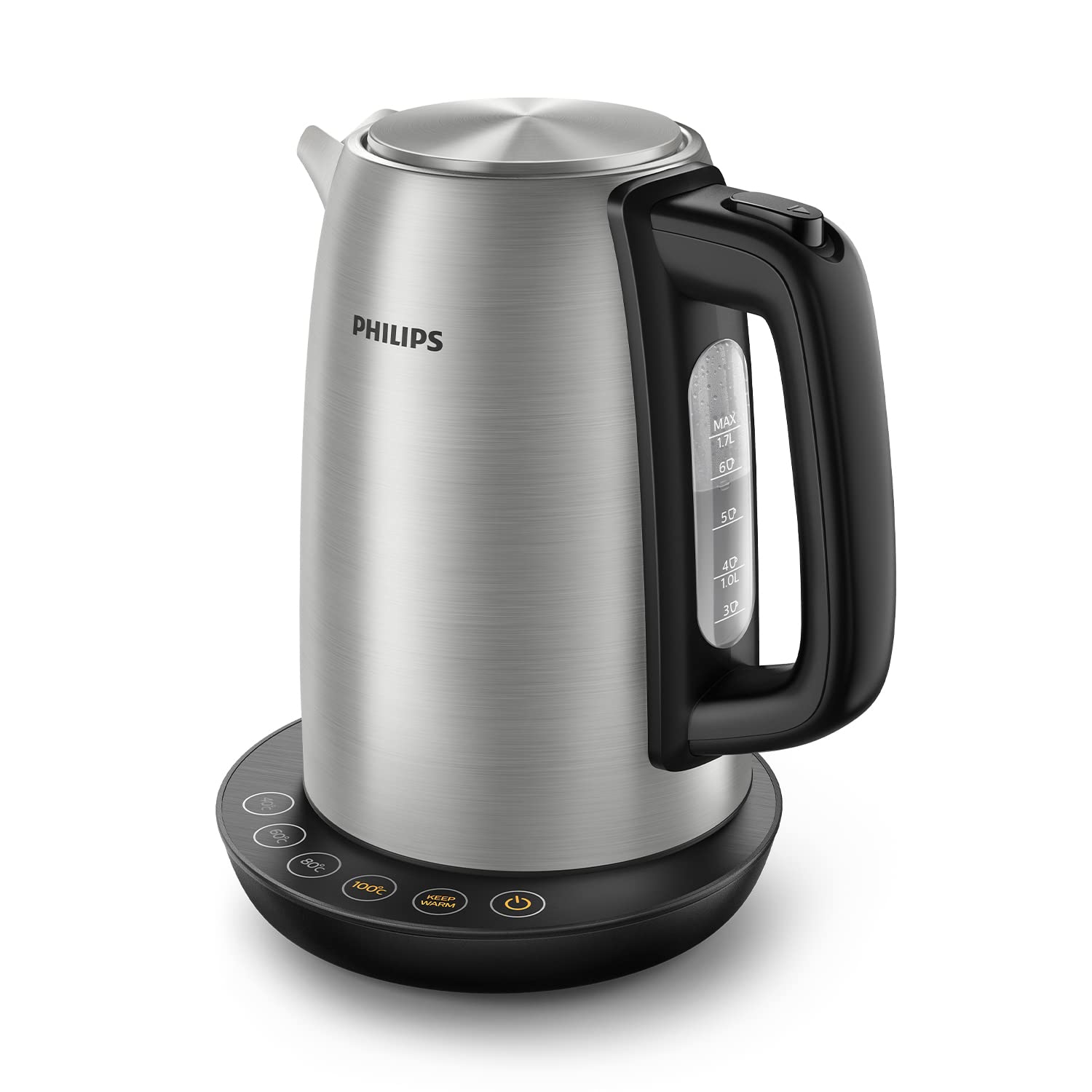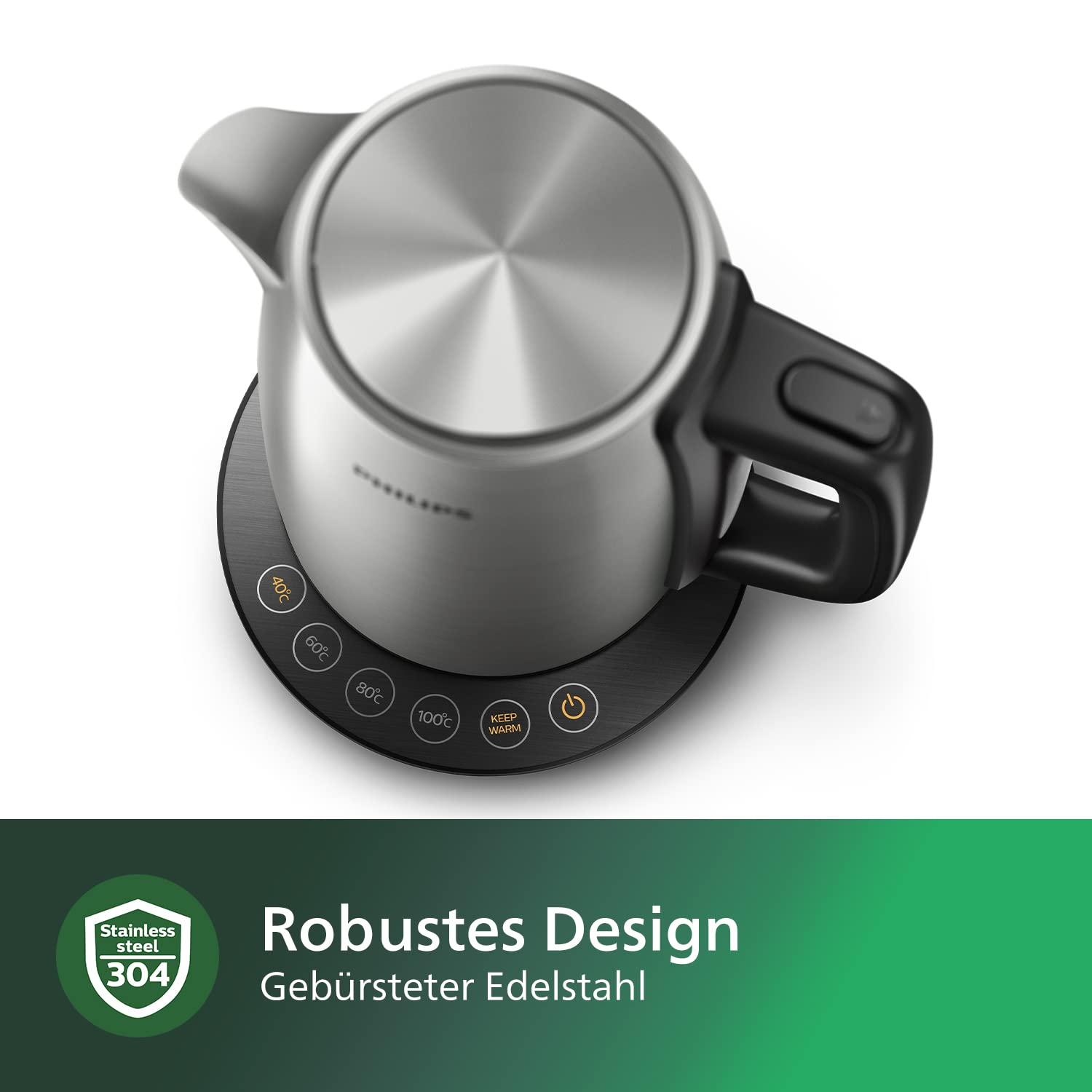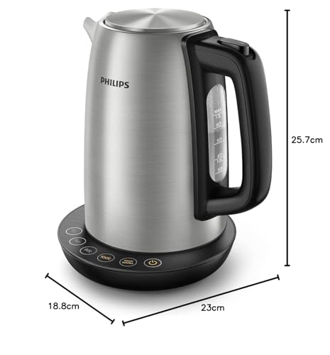 - Für perfektes Ausgießen, von Tee bis Babynahrung: Philips Avance Collection Wasserkocher mit Temperaturregelung, Warmhaltefunktion und äußerst effizientem, flachem Heizelement für schnelles Kochen