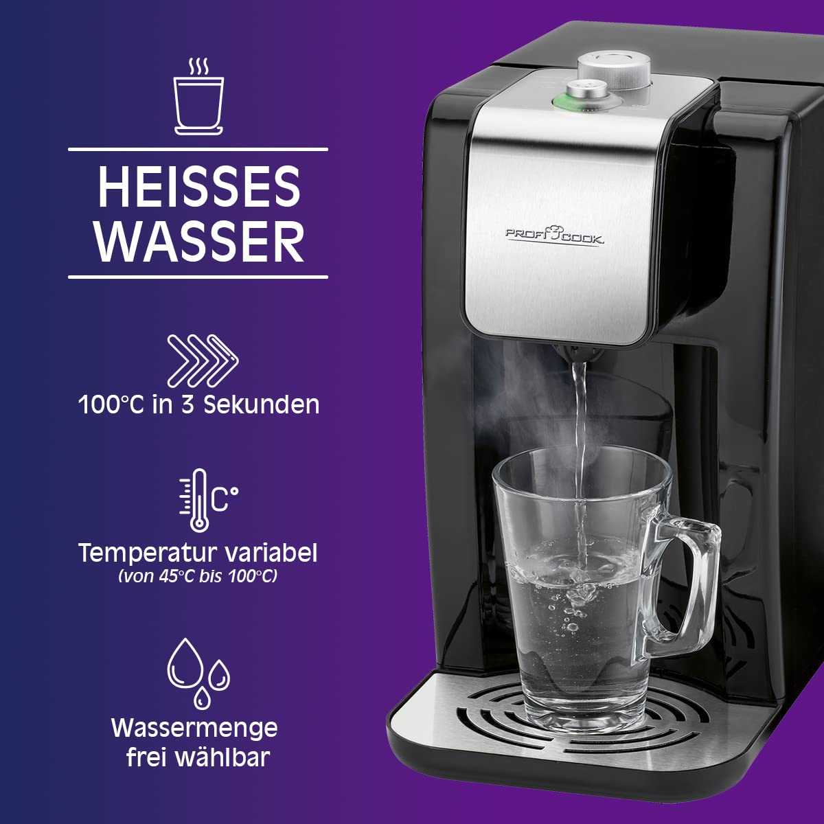 - High-Speed Funktion: Erhalten Sie heißes Wasser auf Knopfdruck – in nur 3 Sekunden auf 100°C. Ideal für schnellen Teegenuss oder Kaffee