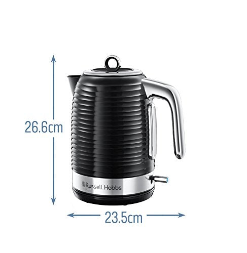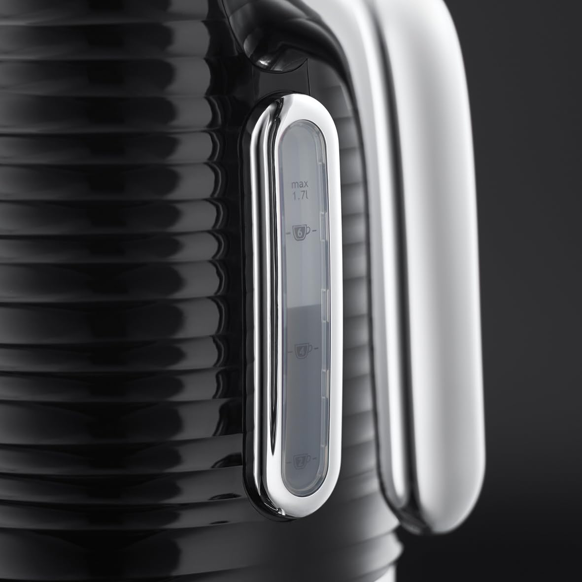 Einzelheiten: Die Frühstücksserie Inspire Black besticht durch ihr strukturiertes Design und passt so in jede Küche. Zusätzlich sind alle Produkte (Wasserkocher, Toaster & Kaffeemaschine) mit hochwertigen Ausstattungsmerkmalen versehen und machen die Serie zu einem echten Highlight. Der Inspire Wasserkocher in schwarz ist mit einer Schnellkochfunktion für 1,2 oder 3 Tassen ausgestattet, mit der sich Wasser in kurzer Zeit besonders energiesparend aufkochen lässt. Für den Kochvorgang einer Tasse werden nur 55 Sekunden benötigt und dabei spart das Gerät bis zu 66% Energie*. Die integrierte Perfect-Pour-Ausgusstülle ermöglicht zudem ein tropfenfreise Ausgießen. Der 2.400 Watt starke Wasserkocher verfügt über ein Fassungsvermögen von 1,7 Liter und hat einen leicht abnehmbaren Deckel zur einfachen Befüllung, sowie einen herausnehmbaren Kalkfilter. (*beim Kochen einer Tasse Wasser 236ml im Vergleich zu 1,0l)