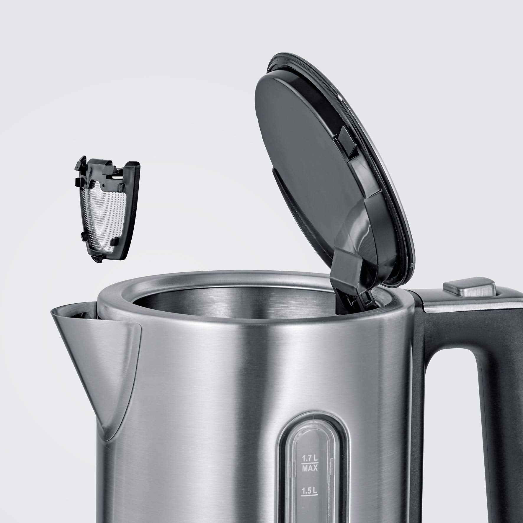 - Details - SEVERIN Wasserkocher, 100% BPA frei, 360° Central Cordless System: kabellos aus jeder Richtung auf den Gerätesockel aufsetzbar, hochwertiges Edelstahl-Design mit 1,7 l XXL-Füllvolumen, WK 3418