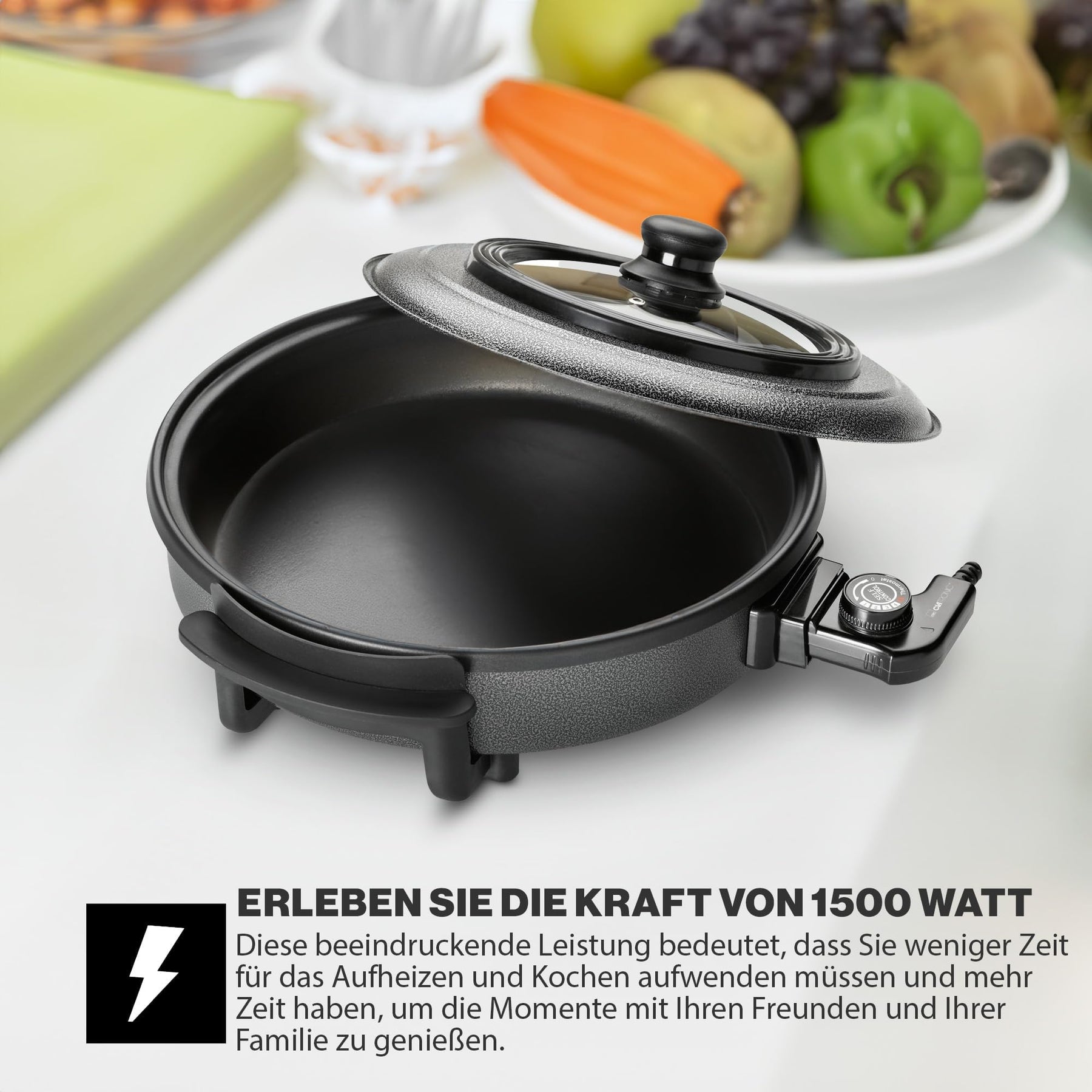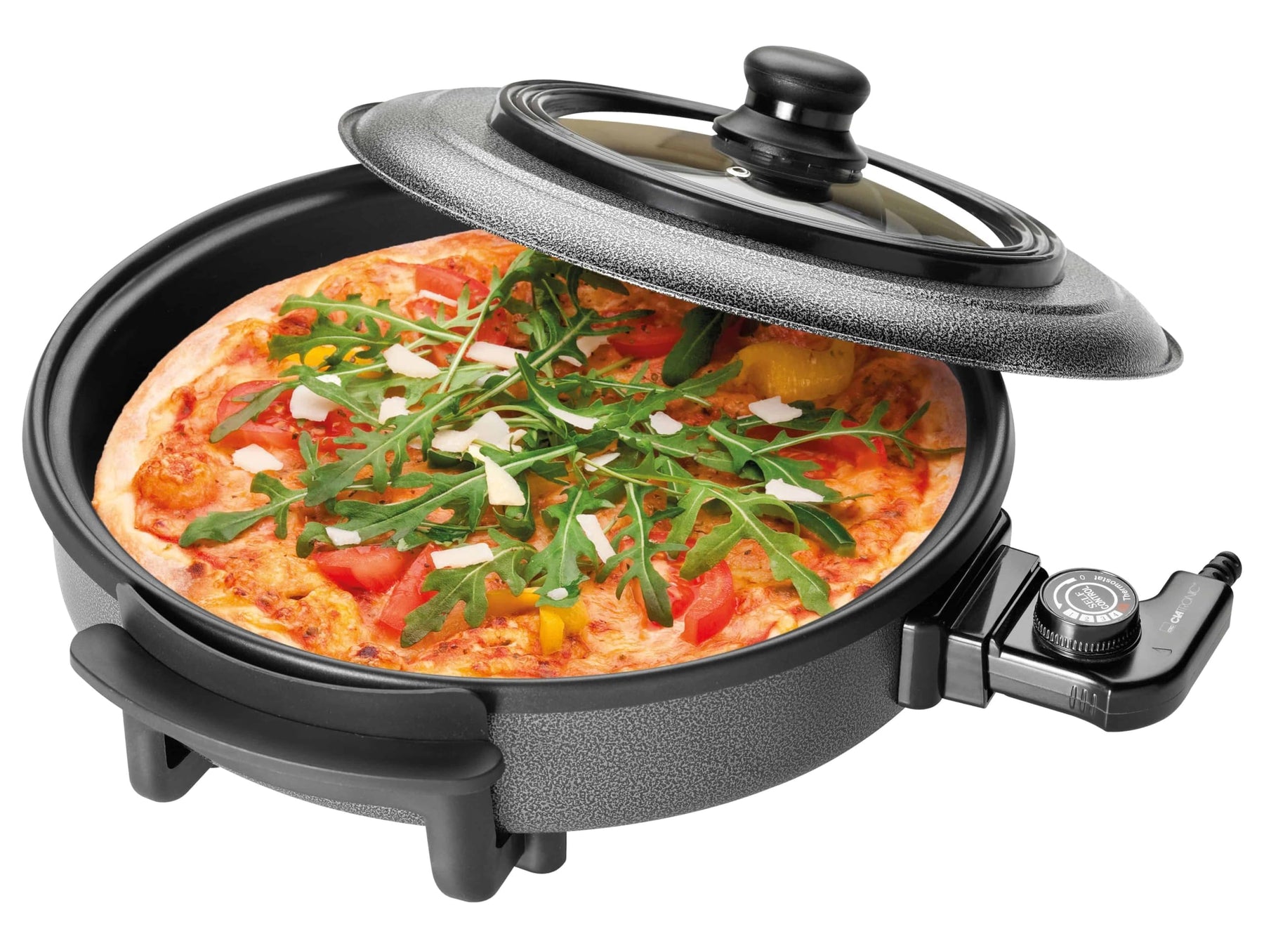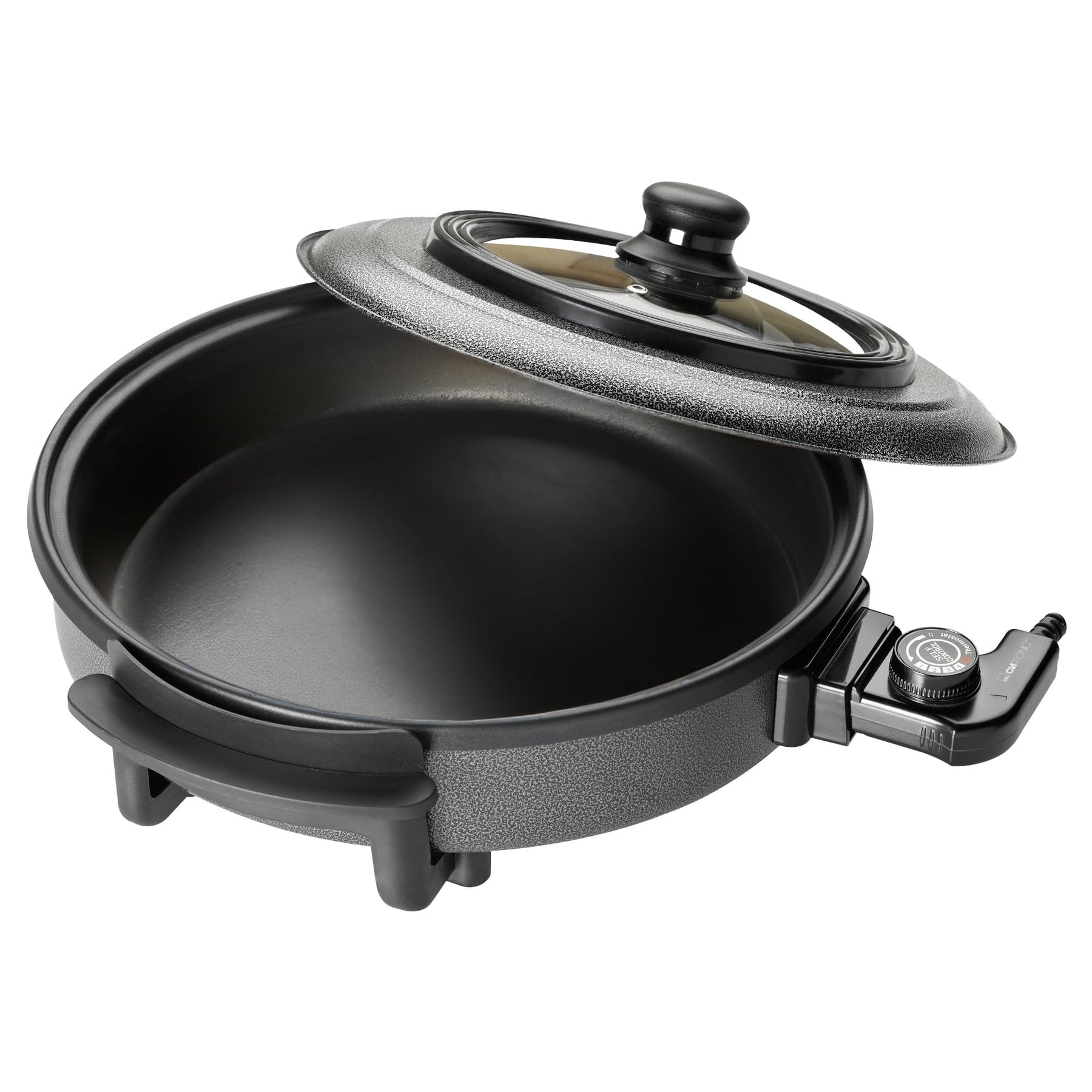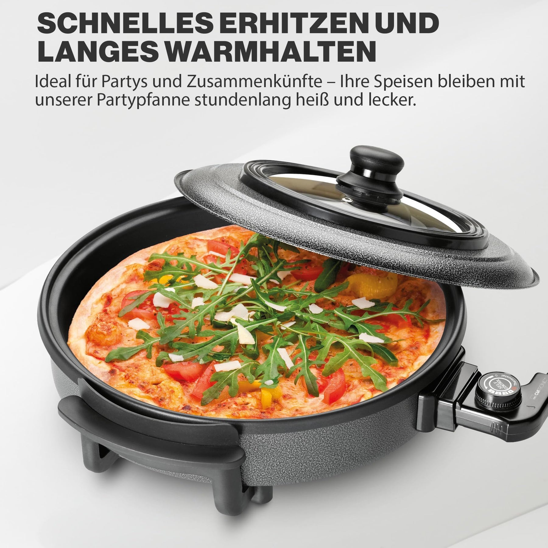 Clatronic® Pizza-/Partypfanne | Multifunktionspfanne zum Kochen, Braten, Dünsten und Warmhalten | Antihaftbeschichteter Bräter | elektrische Bratpfanne Inkl. Glasdeckel | PP 3402
