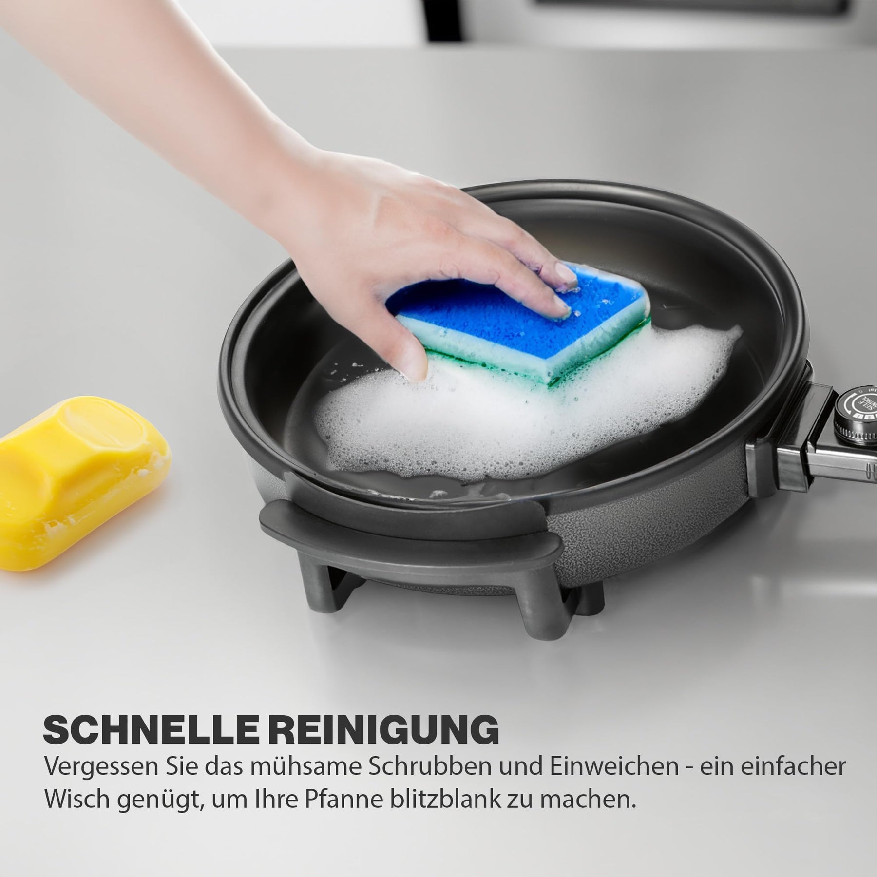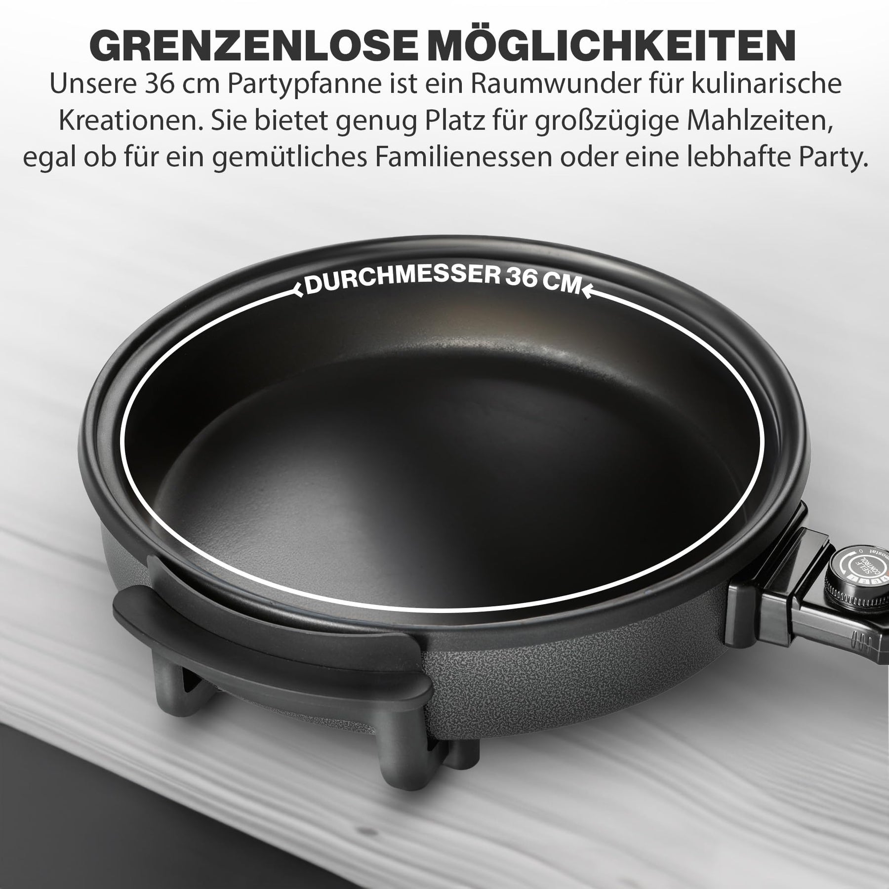 • Erleben sie mit der elektrischen pizza-/ partypfanne die freiheit, zu kochen, braten, dünsten, auftauen und warmhalten – alles in einer pfanne
