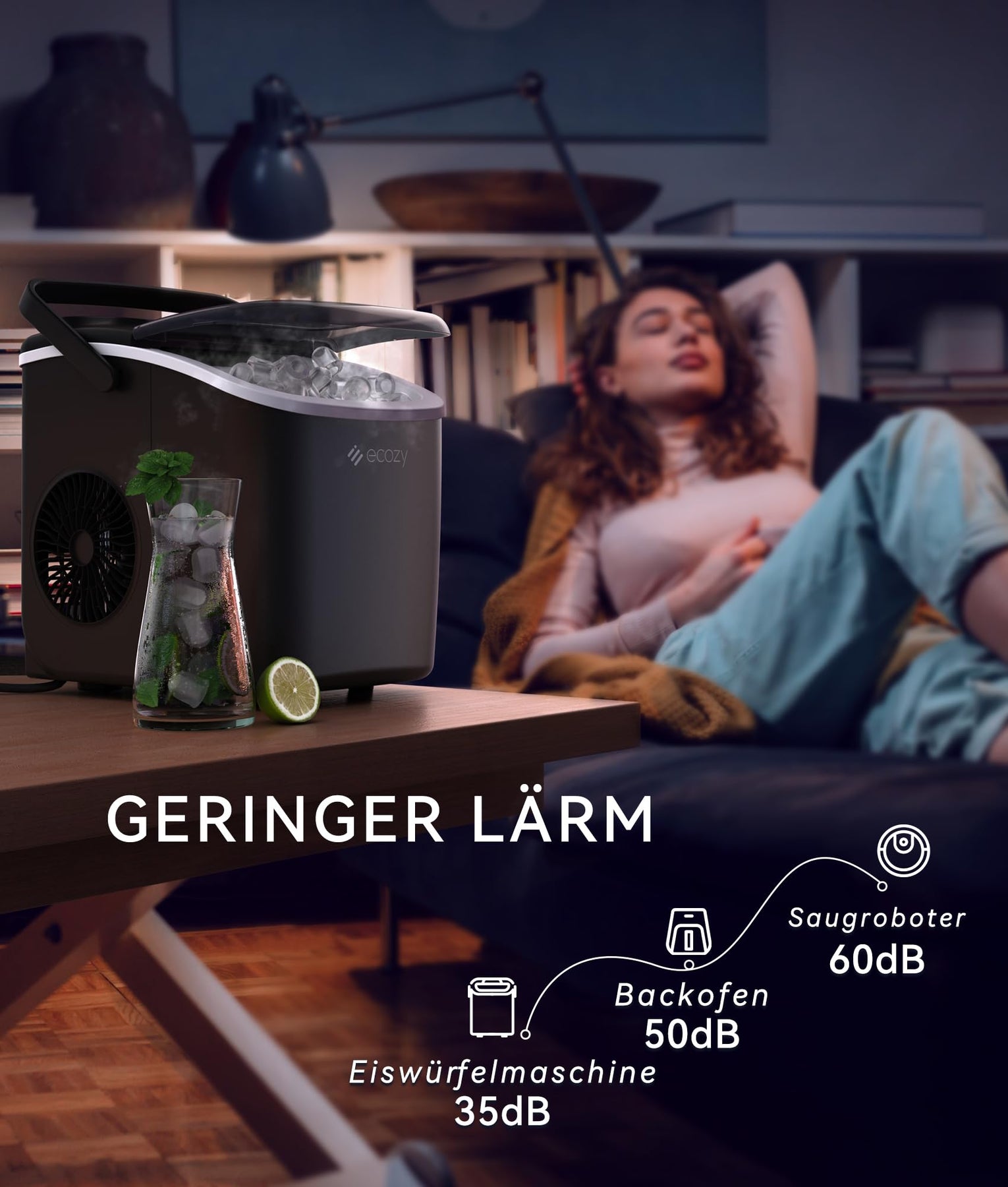 ecozy Eiswürfelmaschine, Eiswürfelmaschine Klein, Selbstreinigende Eiswürfelmaschinen, 2 Eiswürfel Größen Ice Cube Maker, 9 Würfel in 6 Minuten Fertig, 12 KG/24H Eiswürfelbereiter für Zuhause, Party