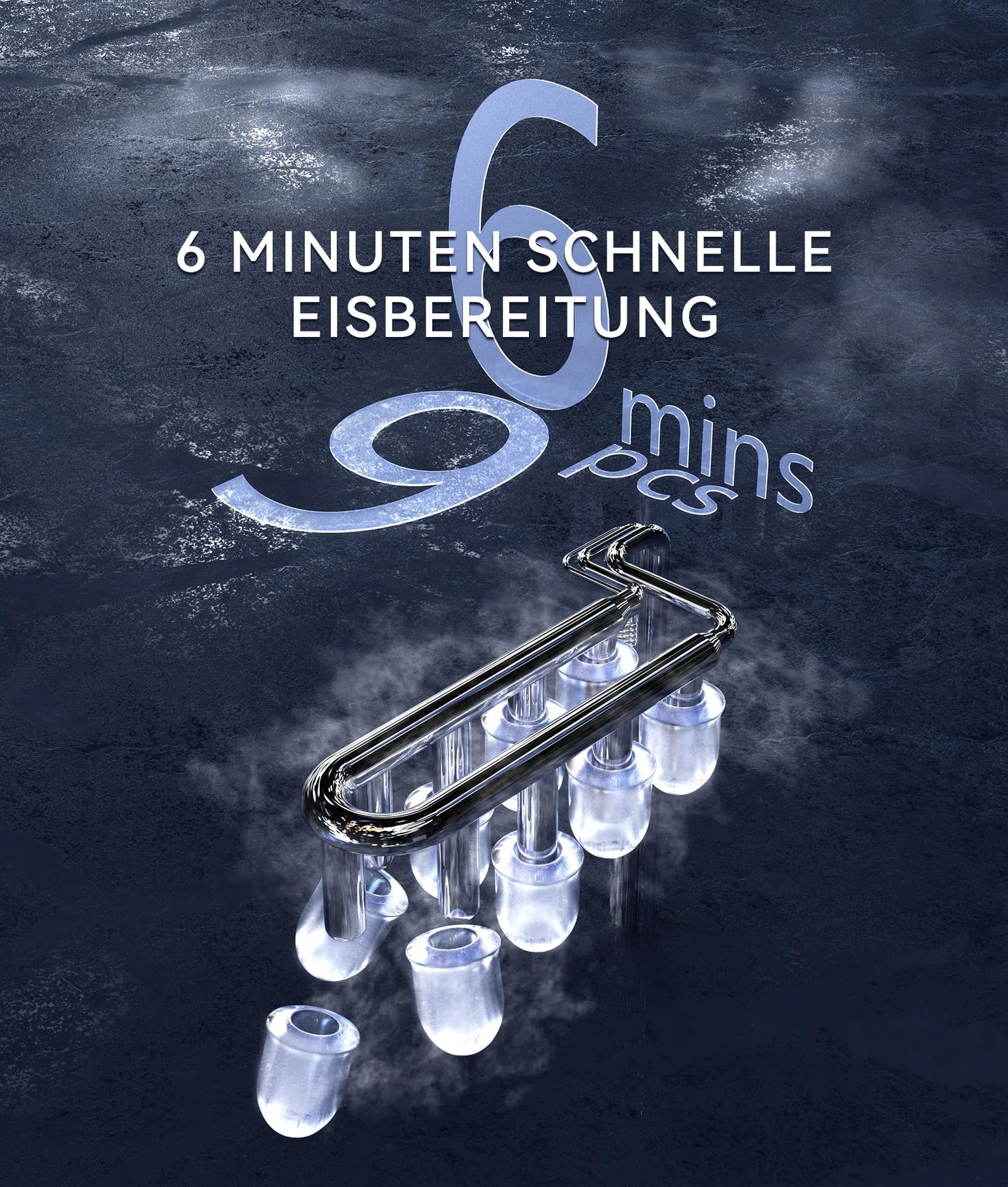• Schnelle 6-Minuten-Eiswürfelbereitung: Genießen Sie den perfekten Eiswürfel im Handumdrehen mit ecozy Tischeiswürfelbereiter. Mit 6-Minuten-Zyklen, erhalten Sie neun Eiswürfel auf einmal und produzieren bis zu 12 Kg Eiswürfel pro Tag. Sie können jetzt schnell und einfach frische, saubere Eiswürfel von Ihrem Eiswürfelbereiter erhalten