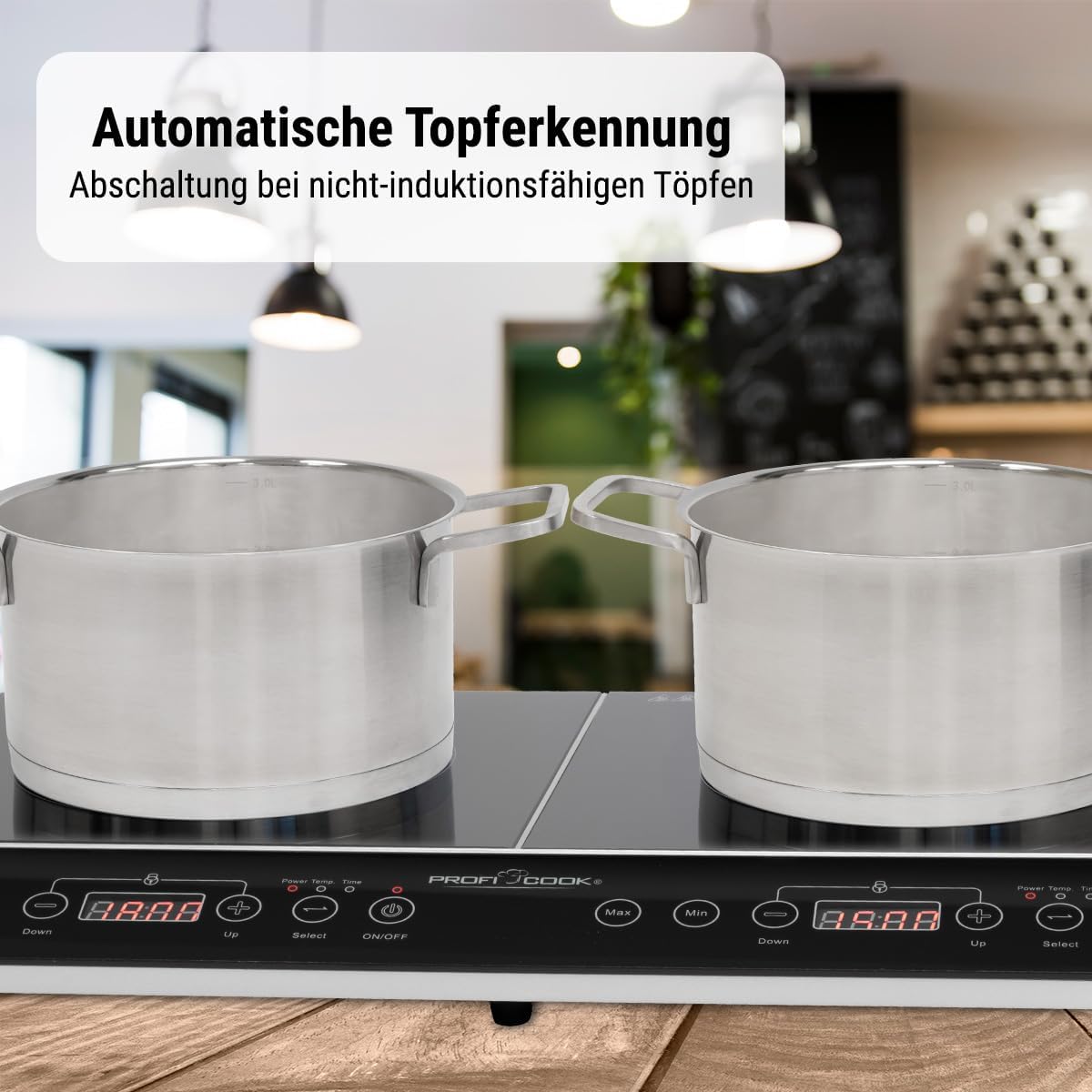 • Entdecken Sie die Induktionsplatte von ProfiCook mit sekundenschneller Erhitzung - dank fortschrittlicher Induktionstechnik sparen Sie bis zu 55% Kochzeit im Vergleich zu herkömmlichen Kochplatten