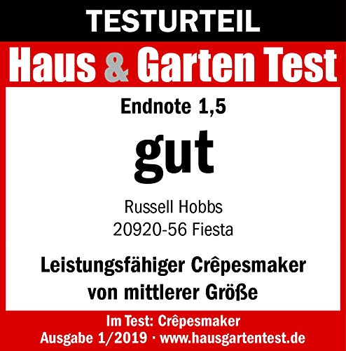 Russell Hobbs Crêpes Maker [Ø30cm, antihaftbeschichtete Platte, inkl. Teigverteiler & Wender] Fiesta Elektrogrill (für Crepes, Pancakes, Galettes & Burritos, Taccos, 1000W) Tischgrill 20920-56