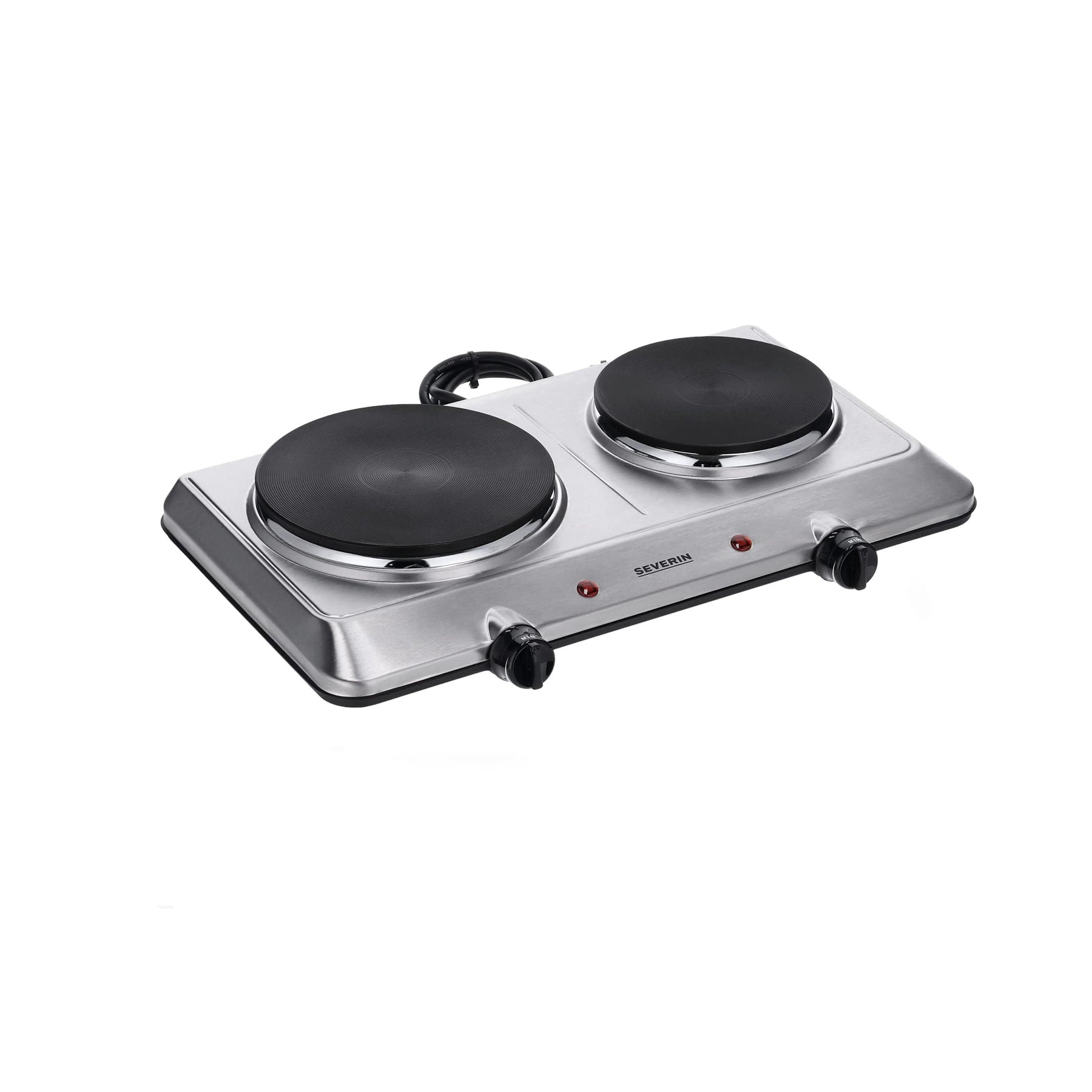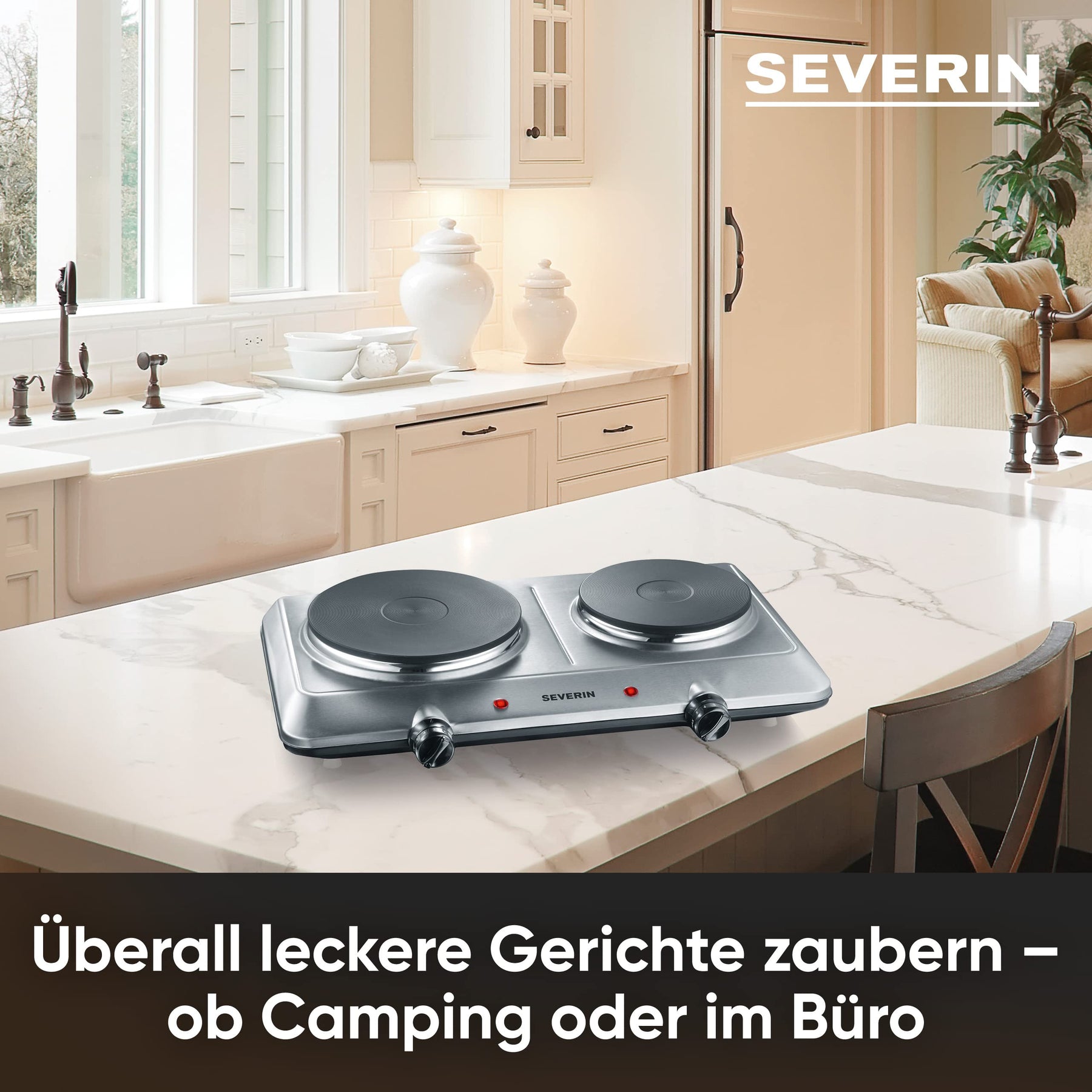 SEVERIN Doppel Kochplatte für Küche, Büro oder Camping, kleine Herdplatte mit stufenloser Temperatureinstellung, Campingkocher für zwei Töpfe, Edelstahl, 2.500 W, DK 1014