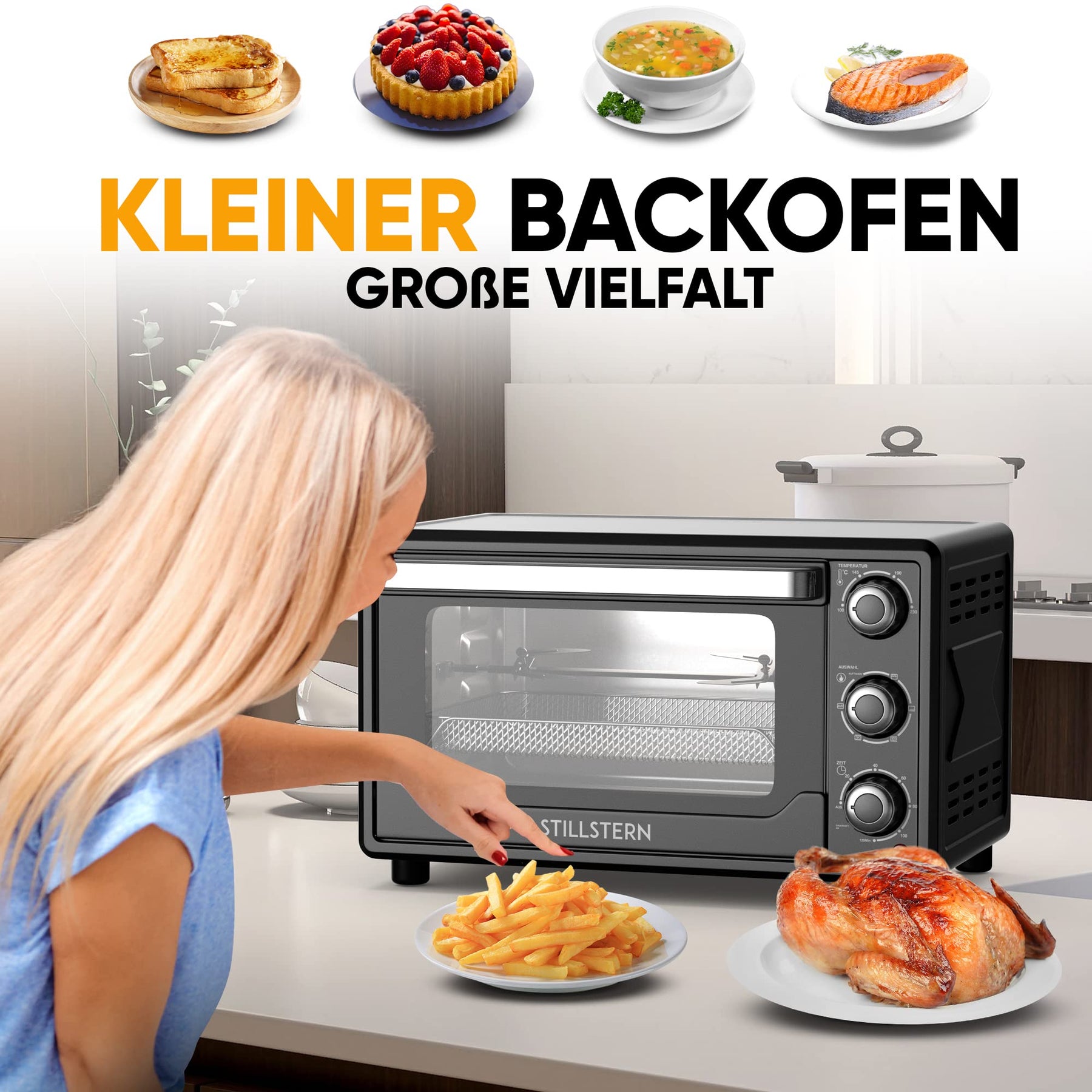 - VIELSEITIGE ANWENDUNG - Von Pizza, Kuchen über Chicken Wings bis hin zu Grillhähnchen: Der neue Minibackofen von Stillstern kann eigentlich alles und das sehr einfach. Du erhältst als Starthilfe ein Rezeptheft mit 40 tollen Rezepten dazu!