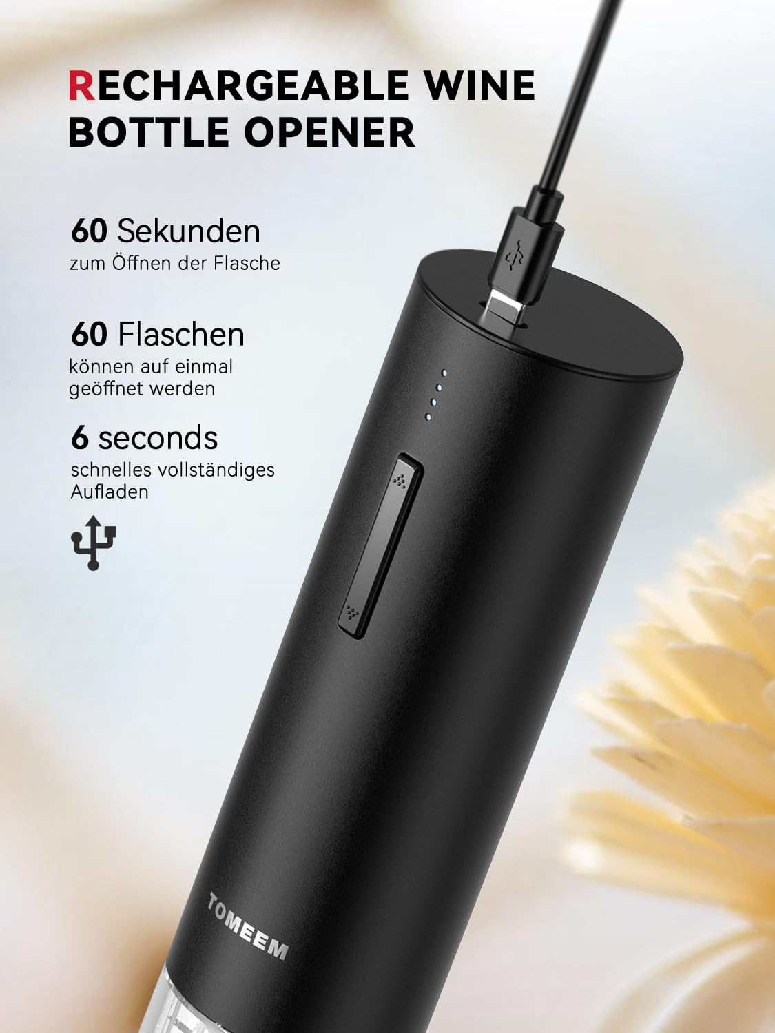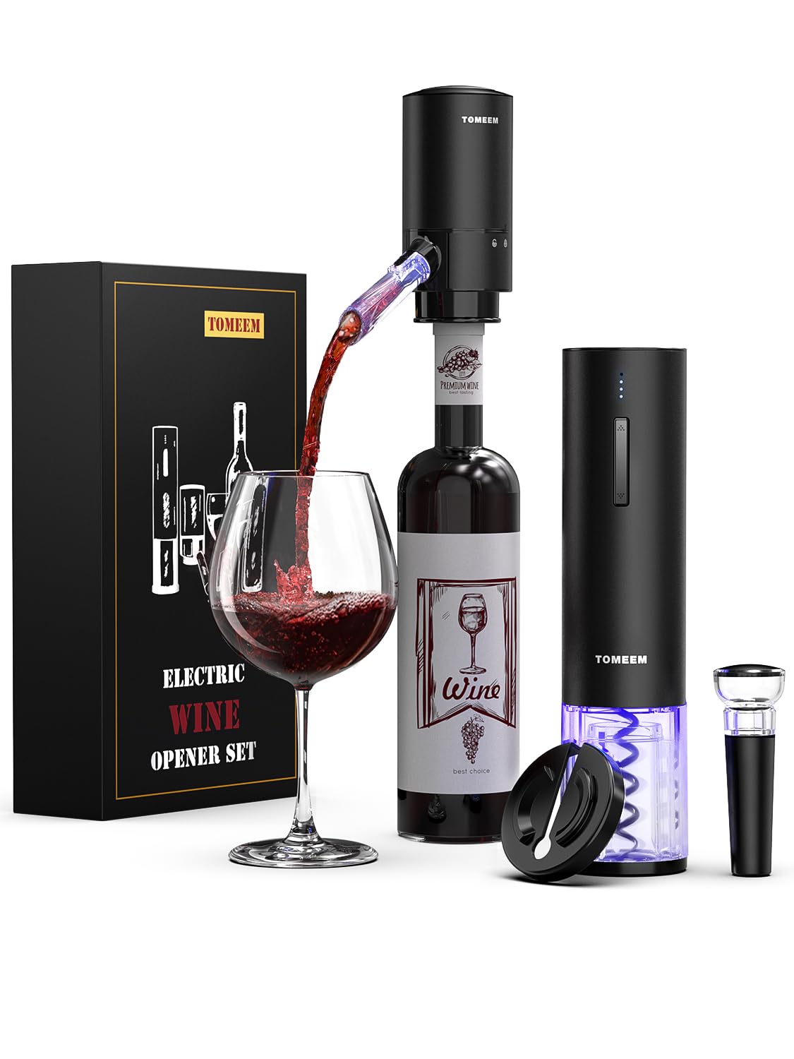 TOMEEM Elektrischer Weinkorkenzieher, Wiederaufladbares 4-in-1 Premium Box mit Belüfter, Vakuum Weinverschluss, Folienschneider, Weinausgießer, Korkenzieher Elektrisch für Hausbar und Partys im Freien