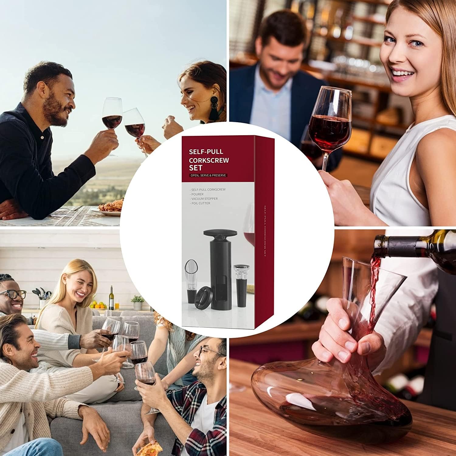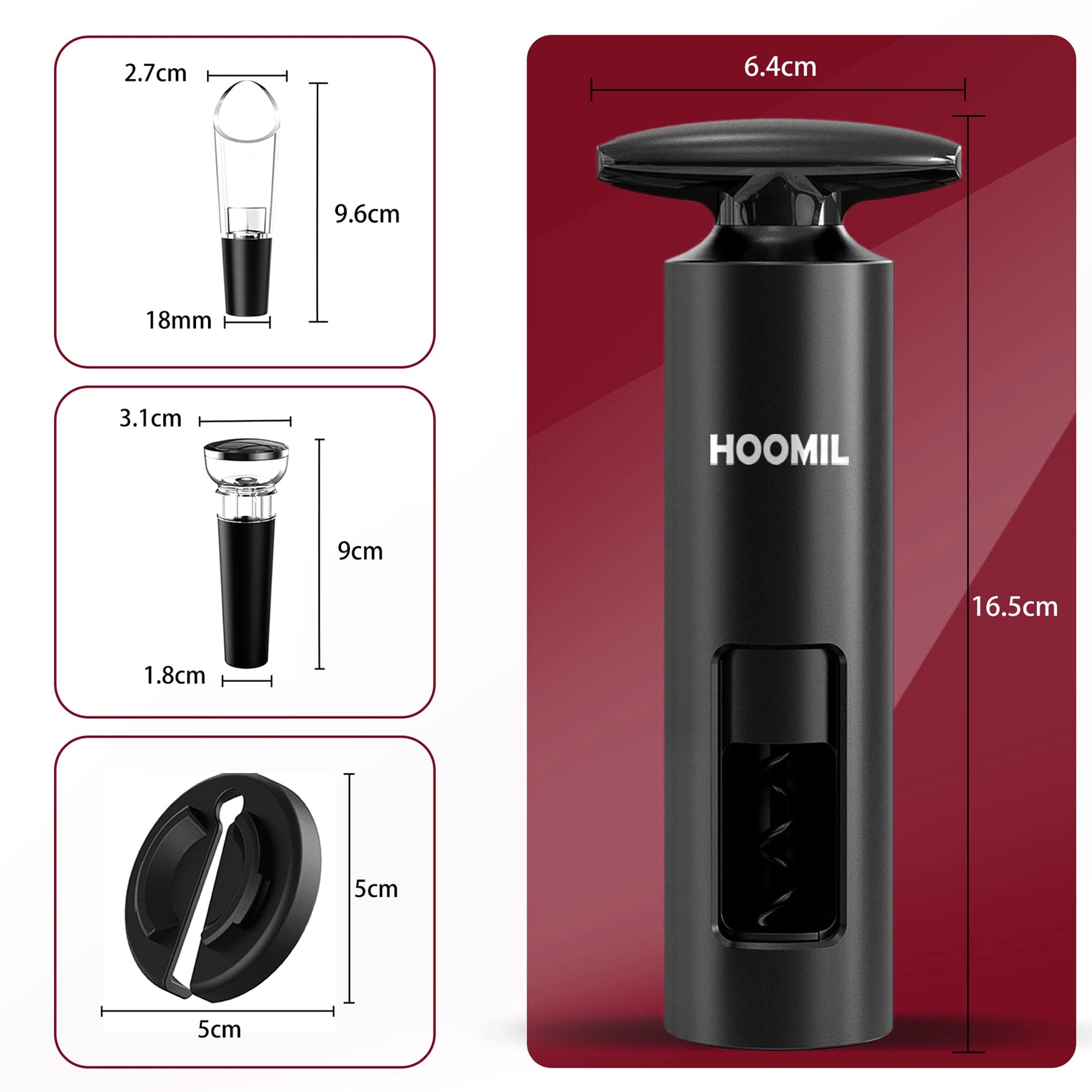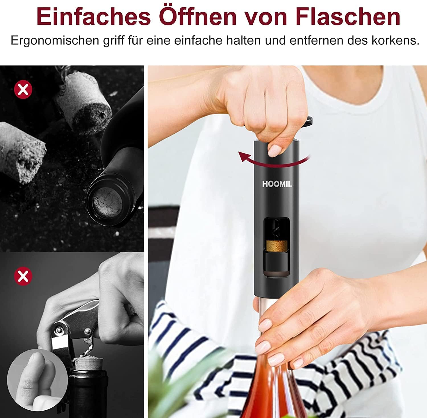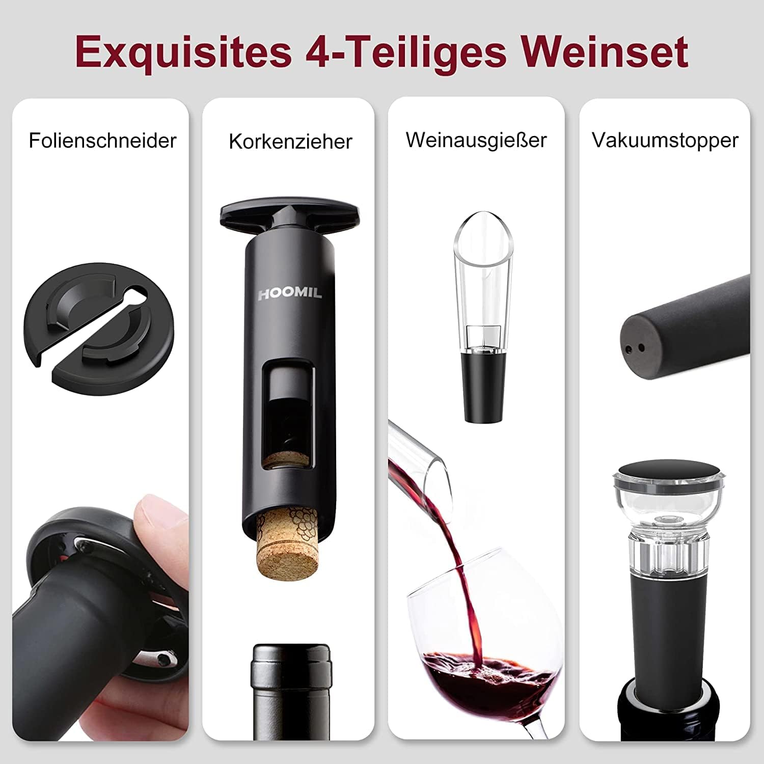 - Exquisites 4-teiliges Korkenzieher Set: Kombination aus HOOMIL Weinflaschenöffner, Wein Folienschneider, Vakuumverschluss und Weinbelüfter Ausgießer; Wir sind ein One-Stop-Service für das Öffnen, Ausgießen und Konservieren von Wein