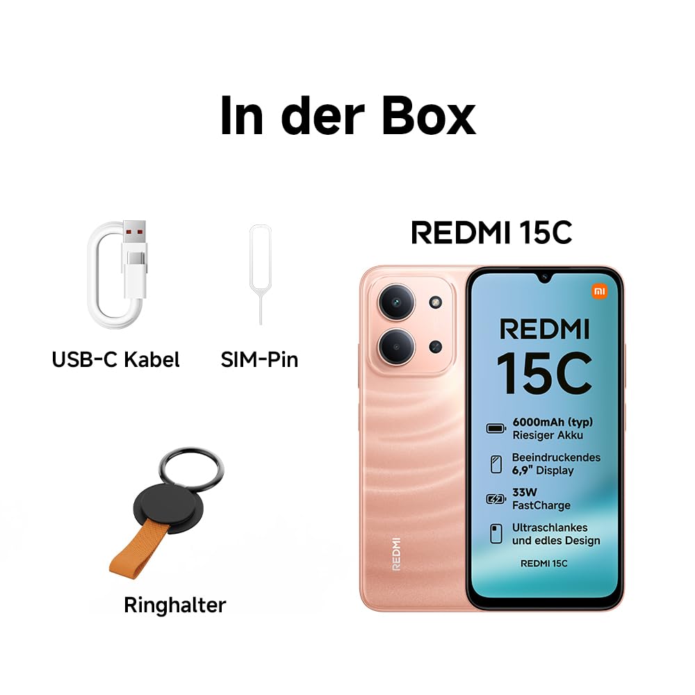 - 【Massiver 6000mAh (typ) Akku – Mehr Power, dennoch schlank】Das Redmi 15C verfügt über einen massiven 6000mAh Akku in einem schlanken Gehäuse. Genieße eine extralange Akkulaufzeit, ohne auf Stil oder Komfort zu verzichten – entwickelt, um deinen Tag und mehr mit Energie zu versorgen.