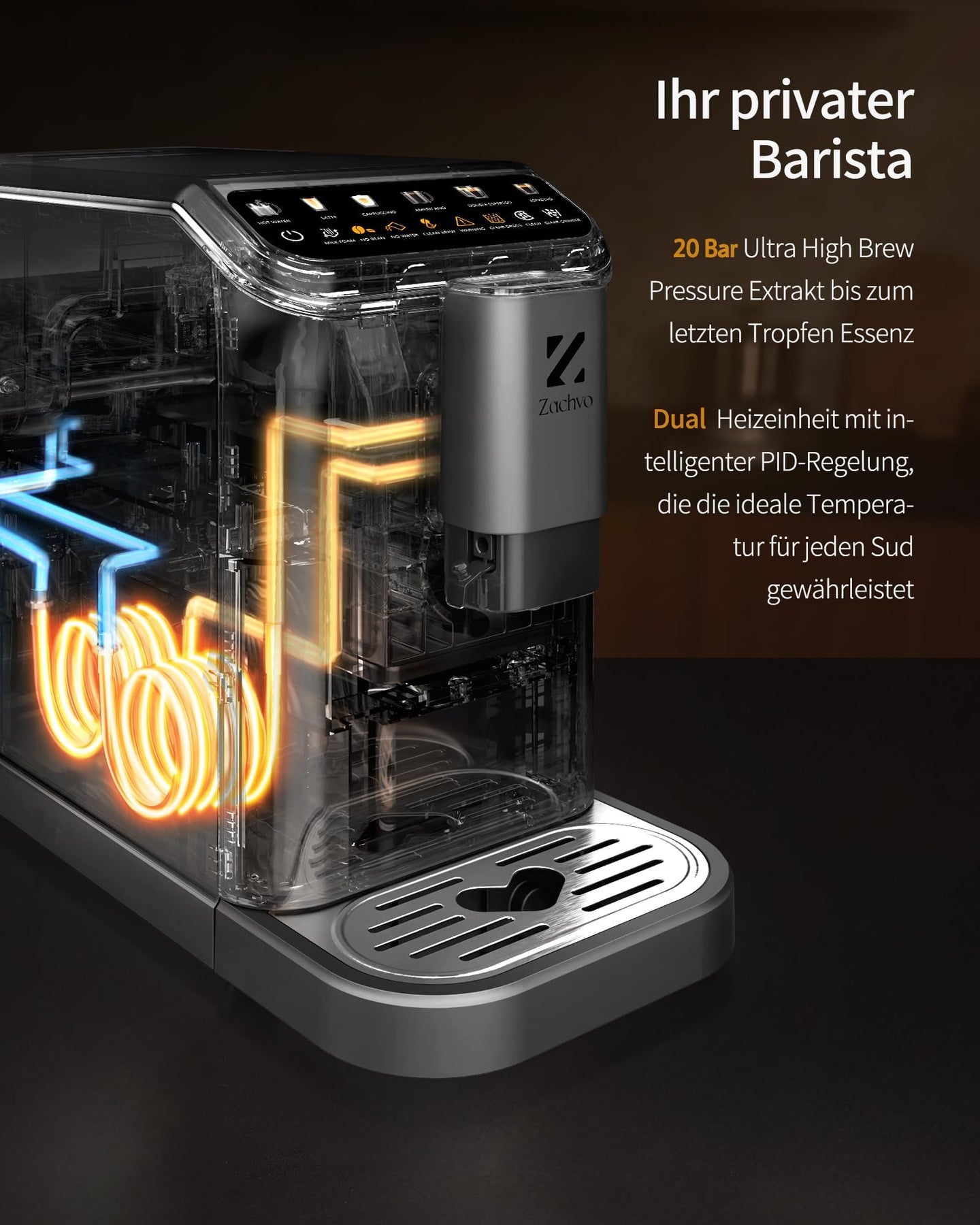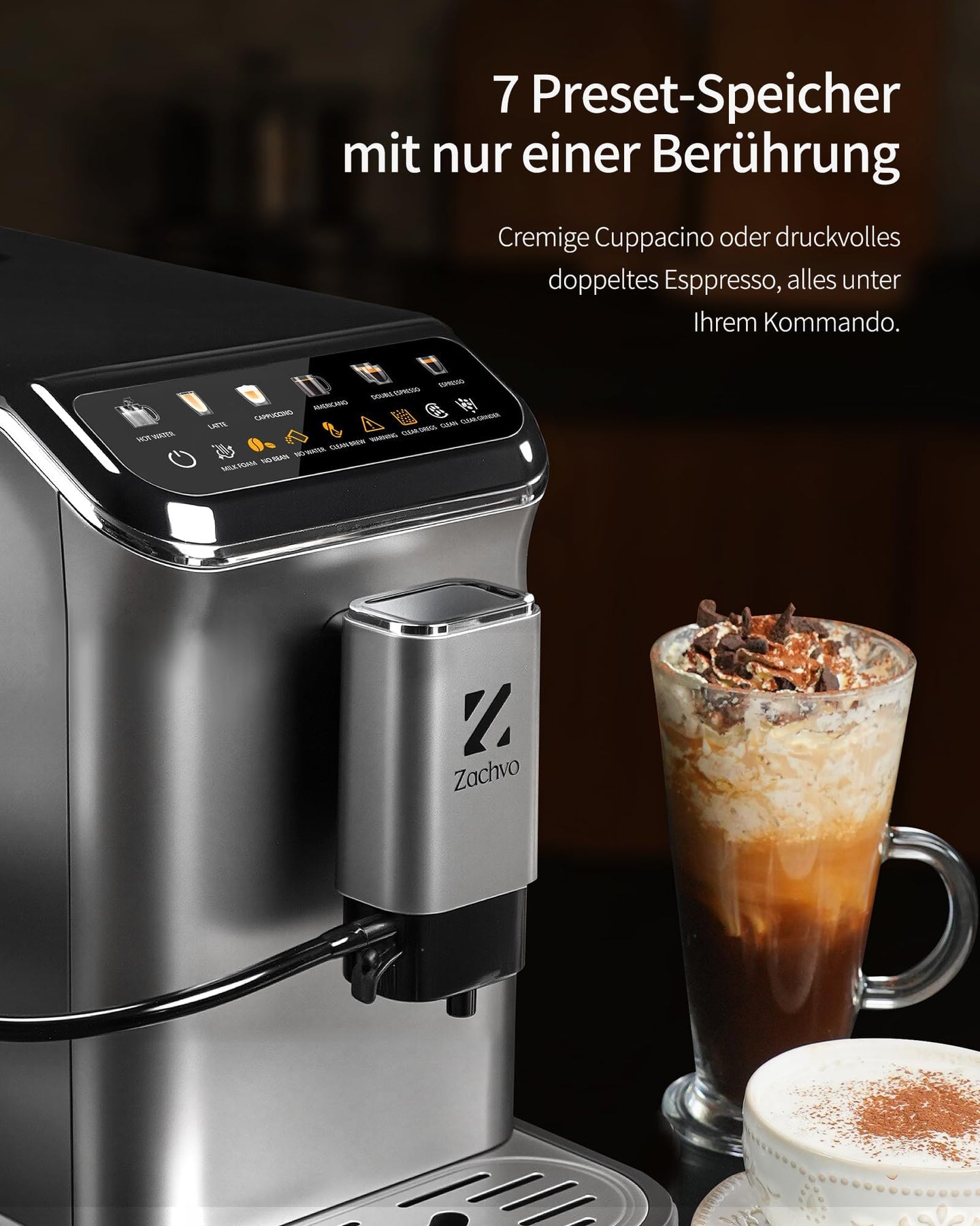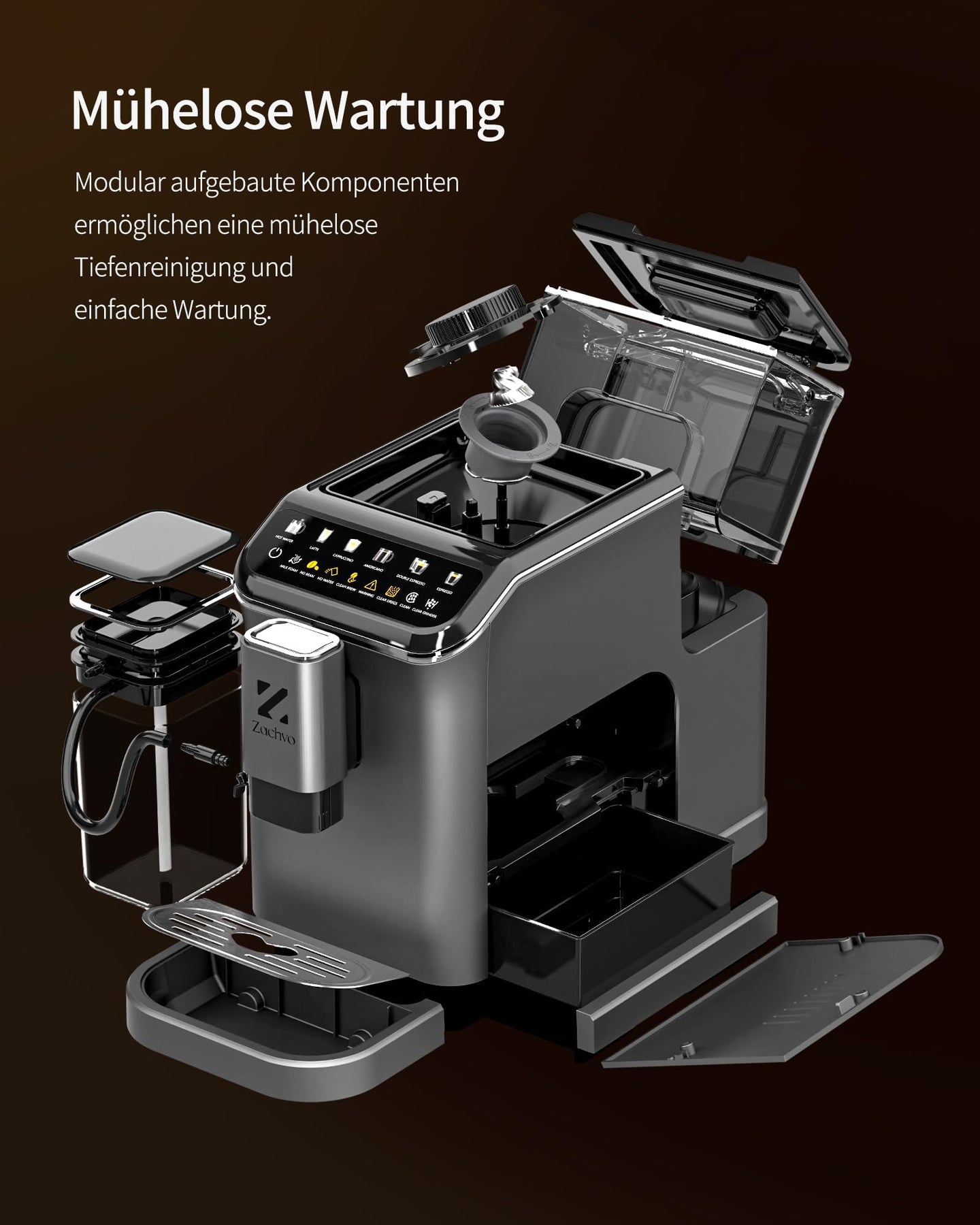 ZACHVO Kaffeevollautomat, One Touch Funktion, Farbdisplay, 1350 Watt, 1500 ml