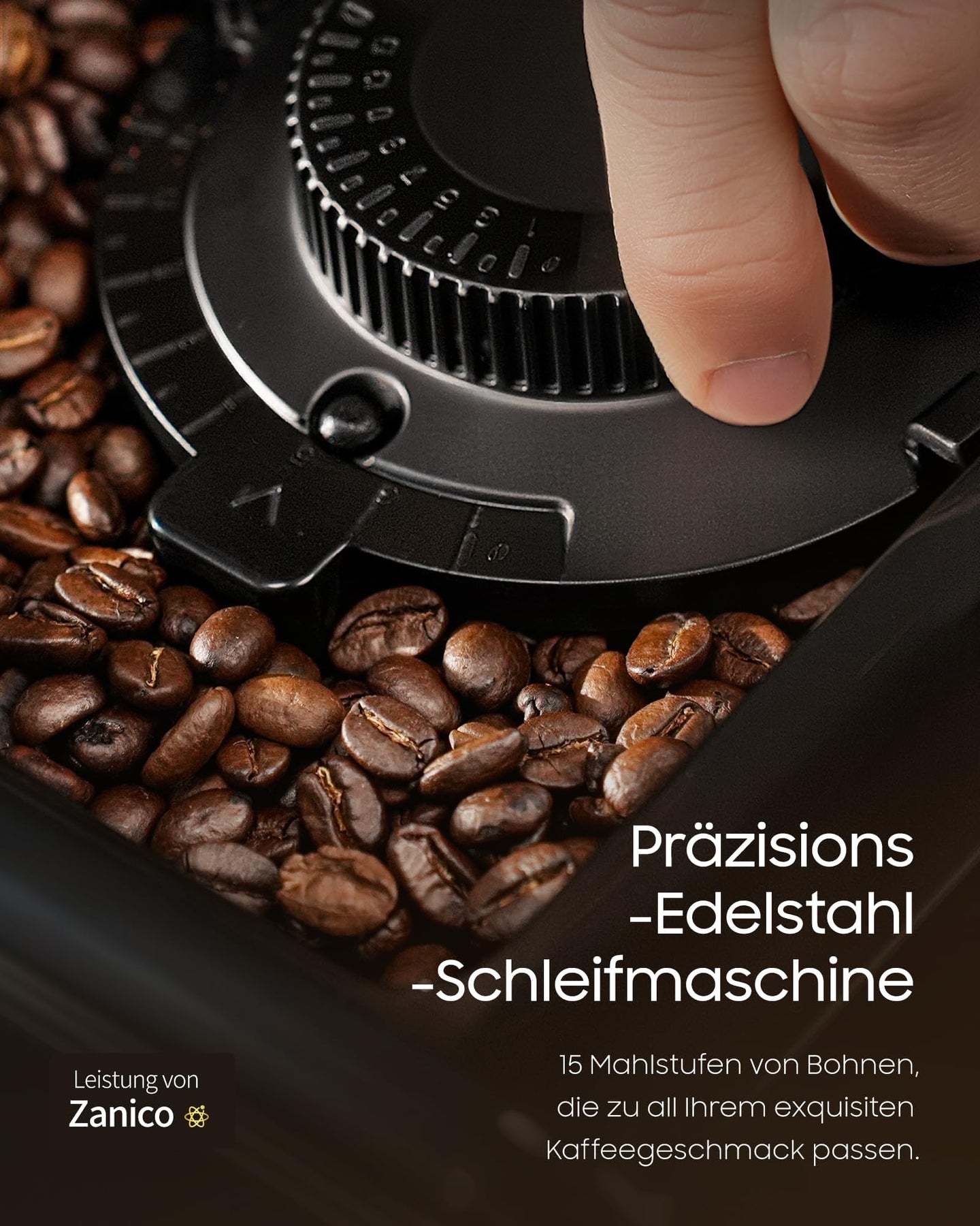 • 【15-stufige Feinjustierung】Das Edelstahl-Kegelmahlwerk arbeitet schonend & aromaerhaltend. Fein für kräftigen Espresso, grober für sanften Americano – passen Sie den Mahlgrad exakt Ihrem Geschmack an.