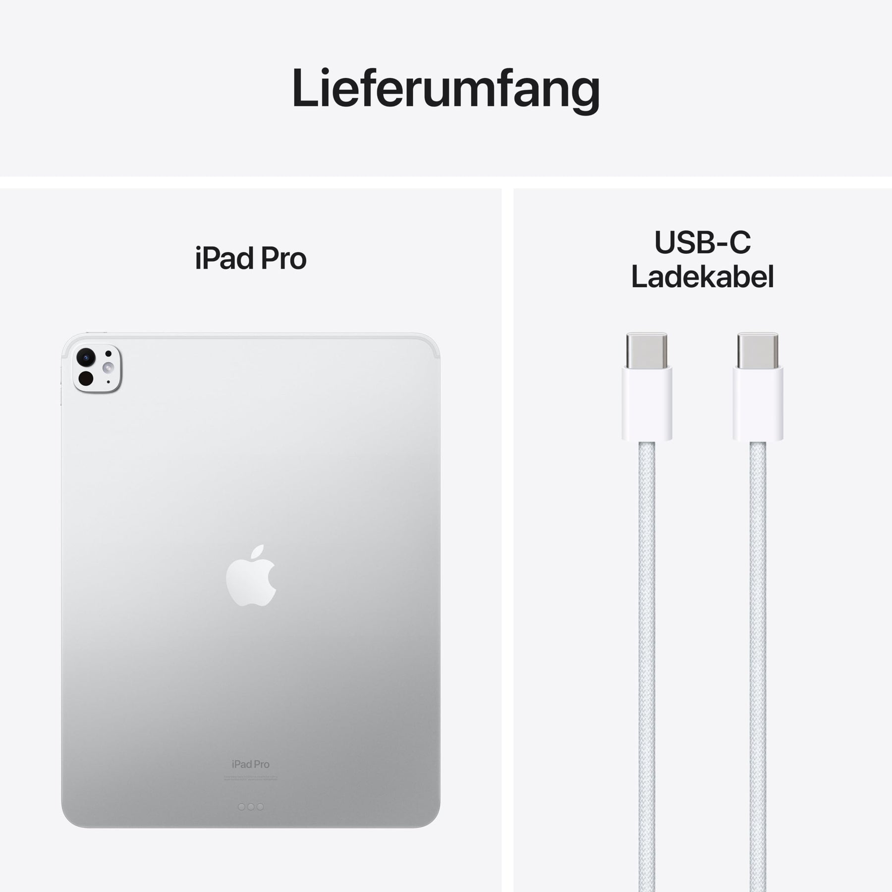 Apple 13" iPad Pro (M4): Ultra Retina XDR Display, 256 GB, 12 MP Querformat Frontkamera/12 MP Rückkamera, LiDAR Scanner, WLAN 6E, Face ID, Batterie für den ganzen Tag, Standardglas– Silber