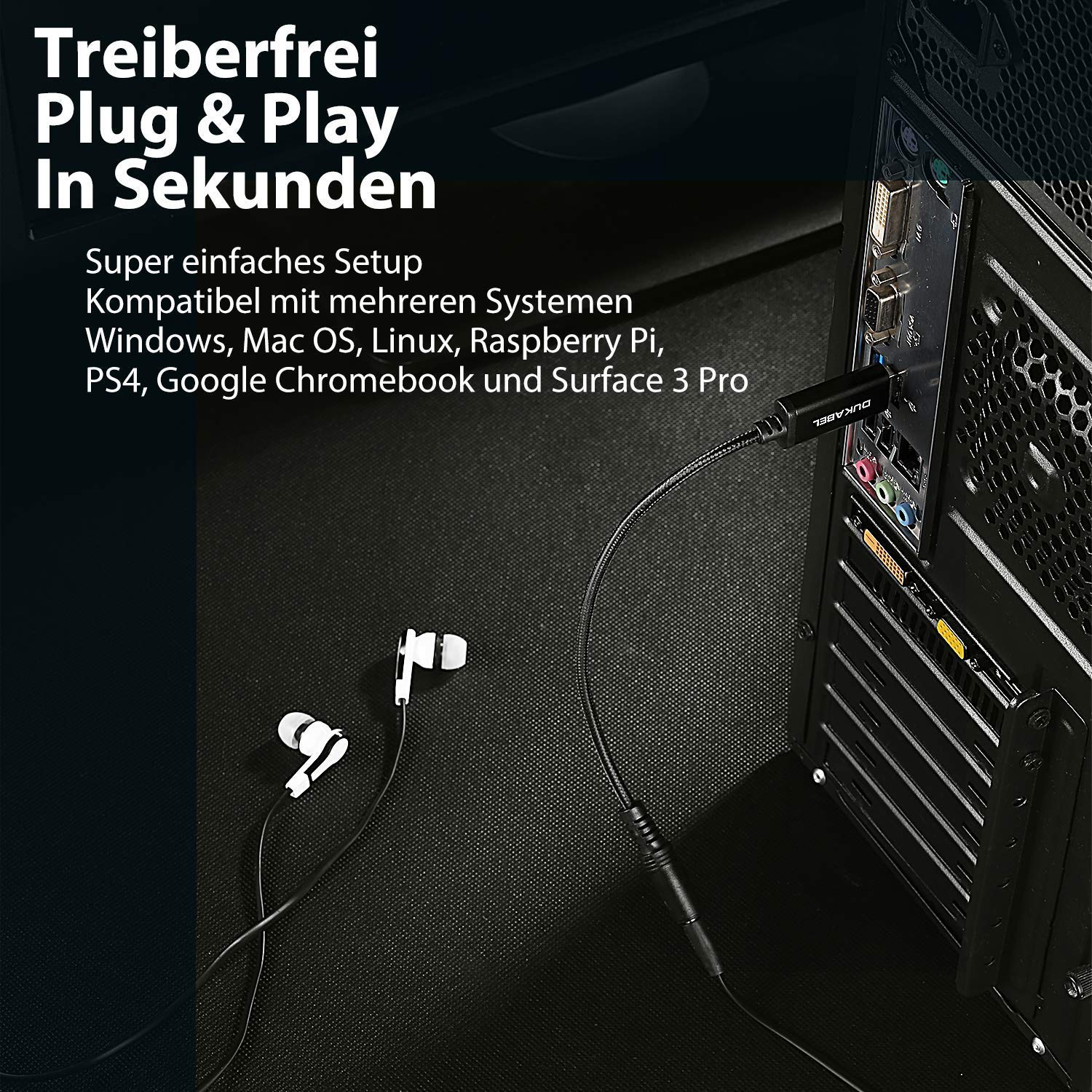- DuKabel External USB Audio Konverter wandelt eine USB Schnittstelle zu weiblicher 4-poligen TRRS 3,5-mm-Klinkenbuchse. Einfache Installation per USB – keine zusätzliche Treiber erfordlich. Kompatibel mit Windows 10/8.1/8/7/Vista/XP, Mac OS X, PS4, Linux, Windows Surface 3 pro, Raspberry Pi usw.