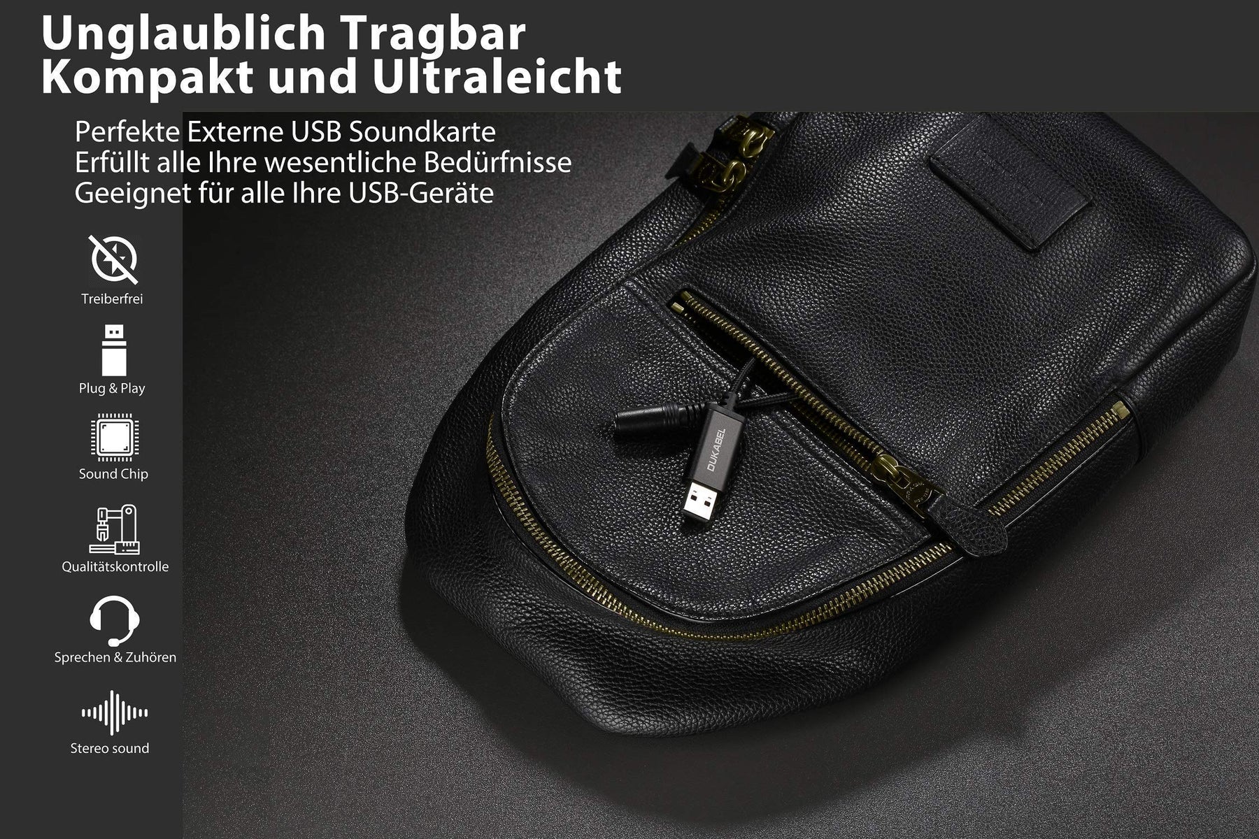- DuKabel USB 3.5mm TRRS Aux Audio Adapters mit 1,8 cm Breite besetzt keinen zusätzlichen Platz von Notebook / Mac usw. (Gerät mit 2 oder mehr USB-Ports). Mit leichtem Gewicht kann die externe USB Soundkarte in einer Tasche nach Büro, Konferenzraum oder zu Hause getragen werden.