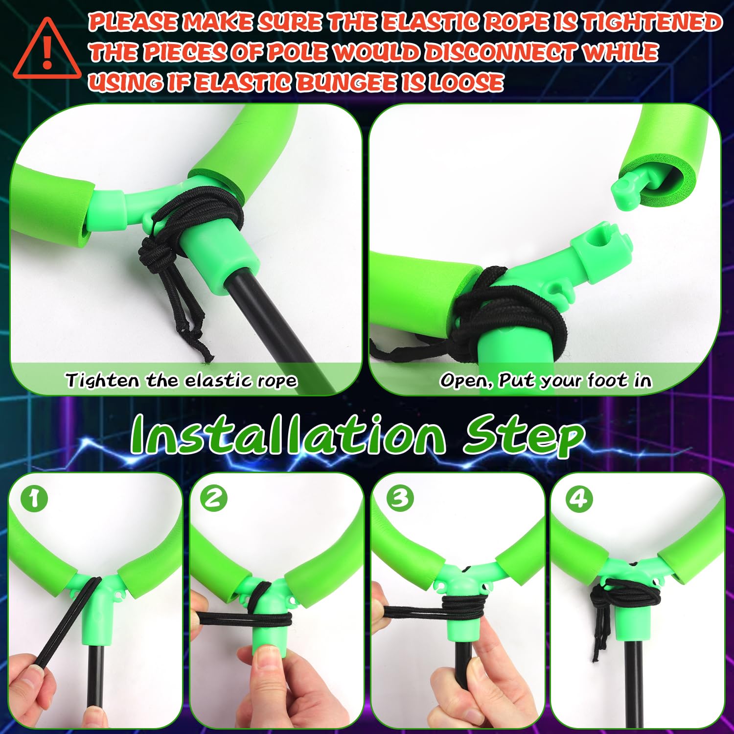 - ELASTISCHES BUNGEE VERKÜRZEN – Wir verbinden die stangenstücke mit elastischem bungee. BITTE STELLEN SIE SICHER, DASS DAS ELASTISCHE SEIL GESPANNT IST. Die stangenstücke würden sich während der verwendung lösen, wenn das elastische Bungee locker ist. Hergestellt aus hochwertigem ECO-Material, sicher und robust. um den Knöchelring ist verdickter schaumstoff gewickelt. Keine harten teile, verletzen die Füße der kinder überhaupt nicht.