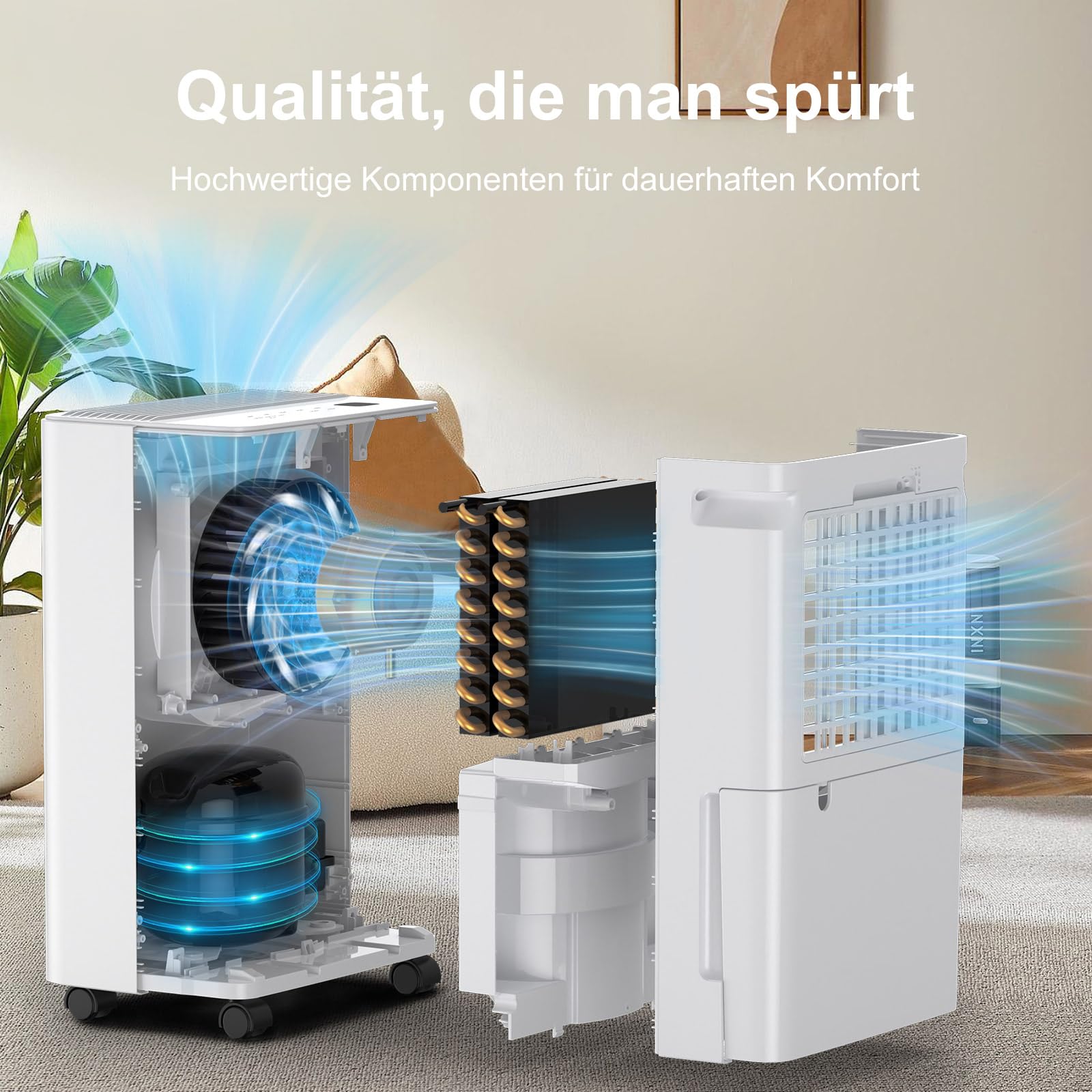 - Hocheffiziente Luftentfeuchtungstechnologie: Dieser Luftentfeuchter ist mit einem leistungsstarken Kompressor und R290-Kältemittel ausgestattet, was eine effiziente Arbeitsweise gewährleistet. Er eignet sich für verschiedene Wohnbereiche wie Schlafzimmer, Wohnzimmer, Garagen, Keller, Badezimmer und Waschküchen, und deckt eine Fläche von bis zu 30 Quadratmetern ab. Mit einer täglichen Entfeuchtungskapazität von 12 Litern bekämpft er Feuchtigkeit in der Luft effektiv