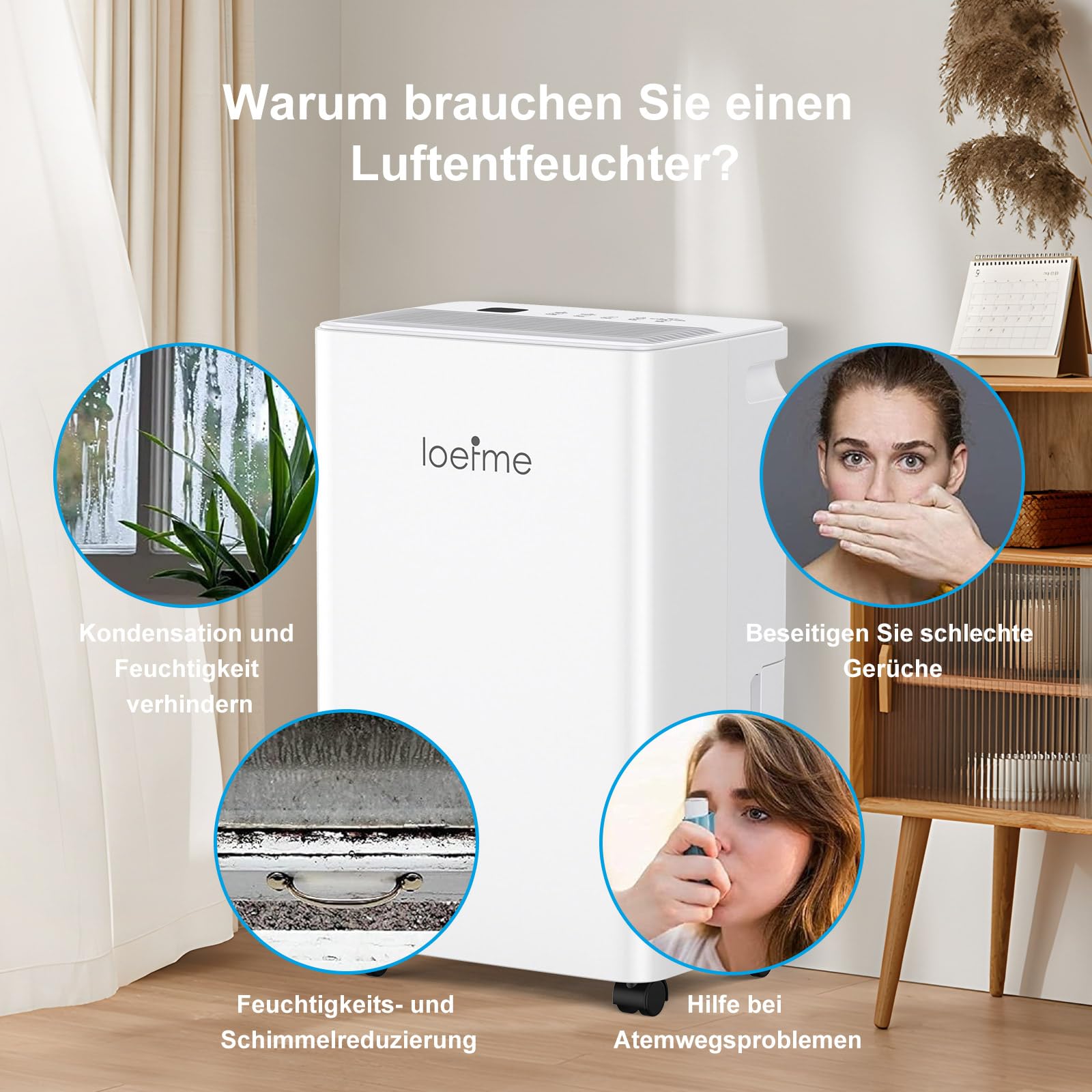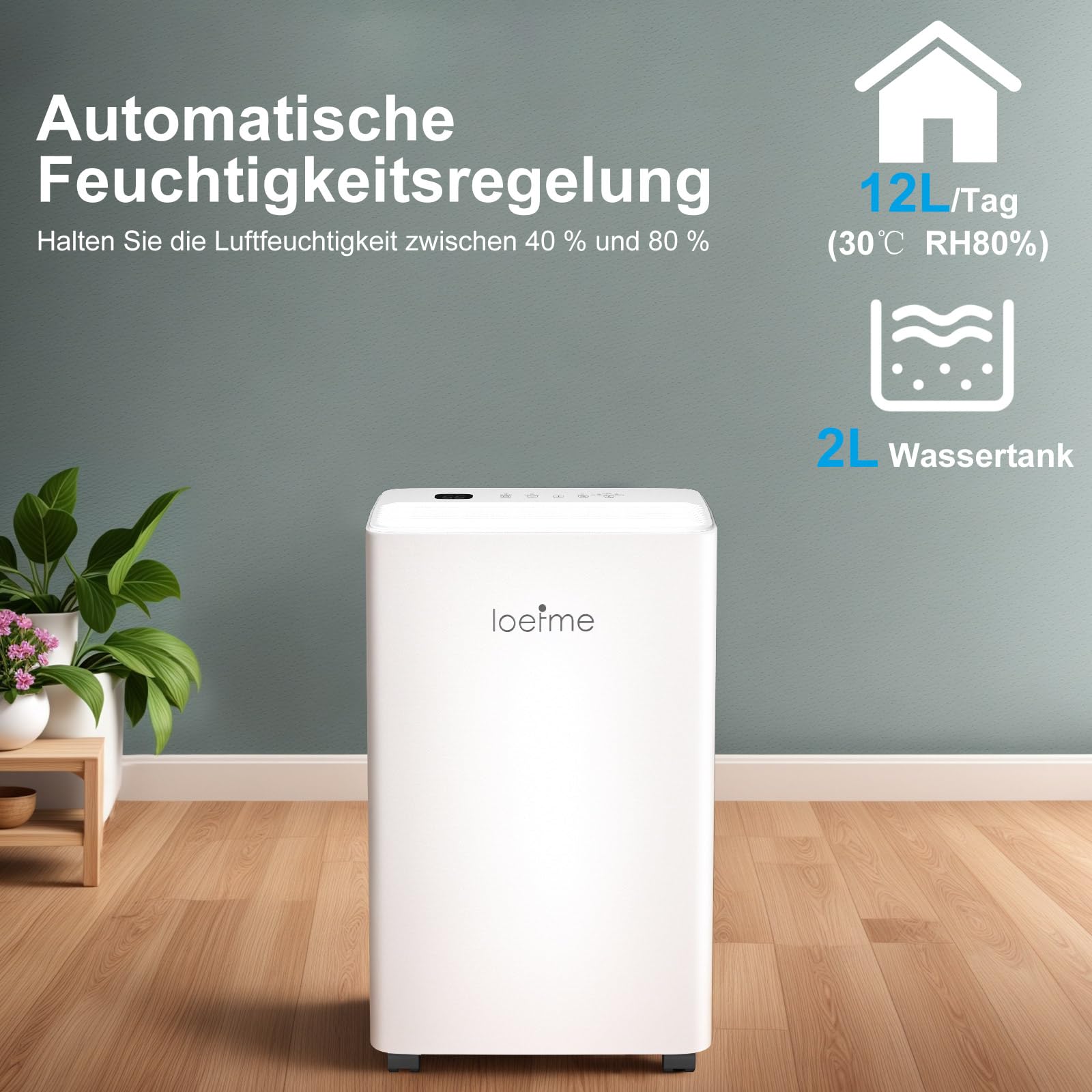 LOEFME 12L/24H Luftentfeuchter Elektrisch,Raumentfeuchter mit Feuchtigkeitssensor für 75m³(30m²), Entfeuchter mit Energieeinsparung,Aktivkohlefilter,Wäsche trocknen,Automatischer Neustart