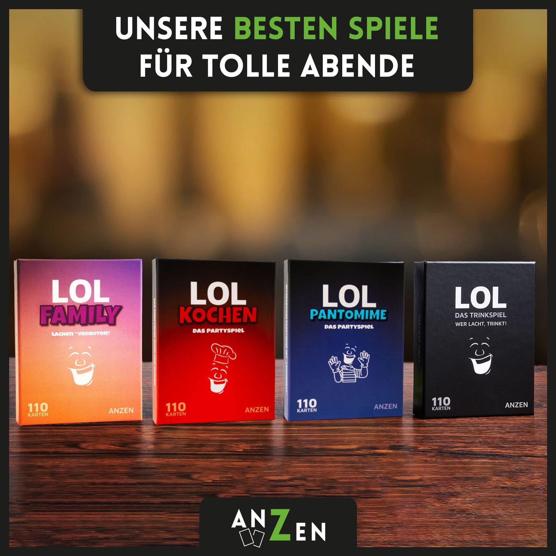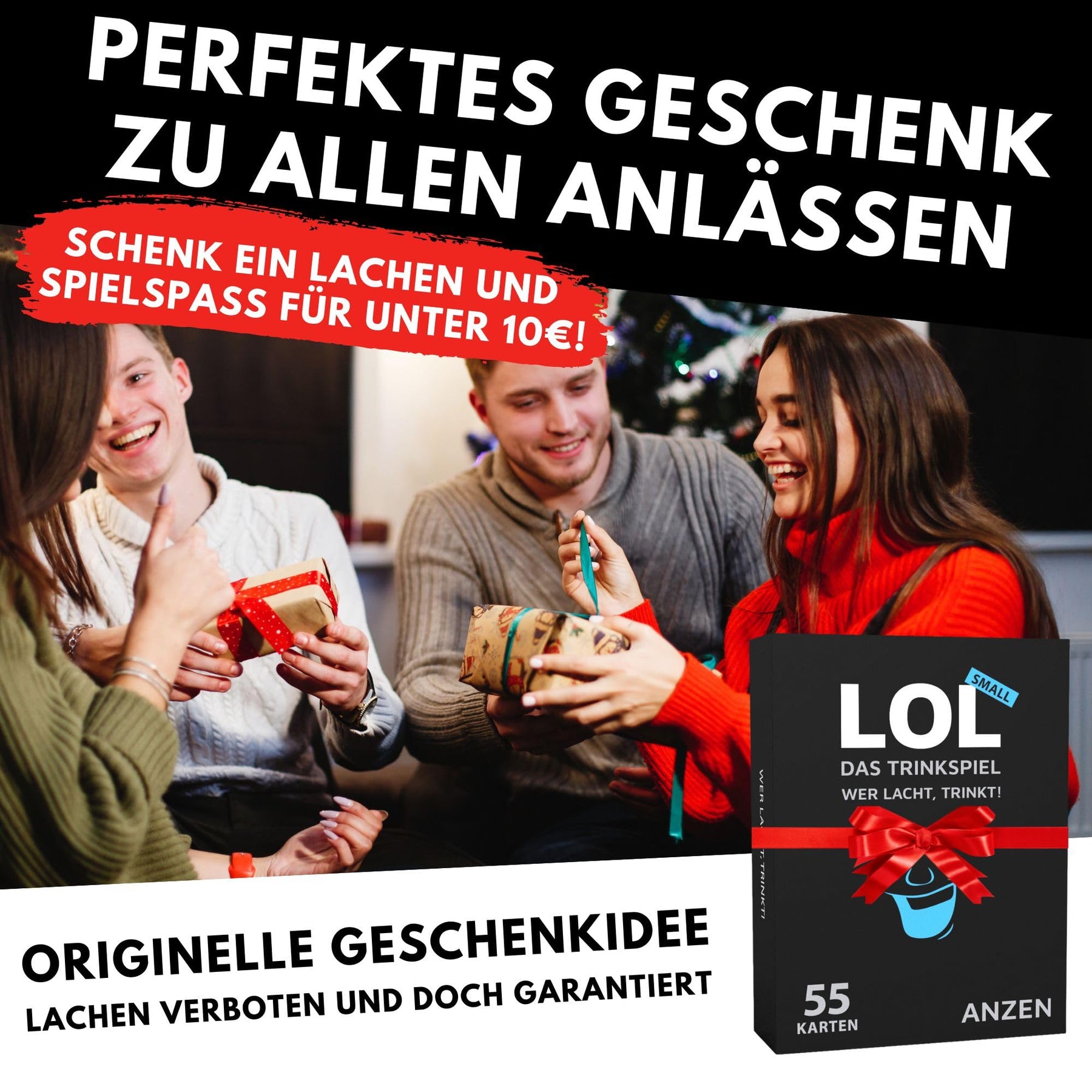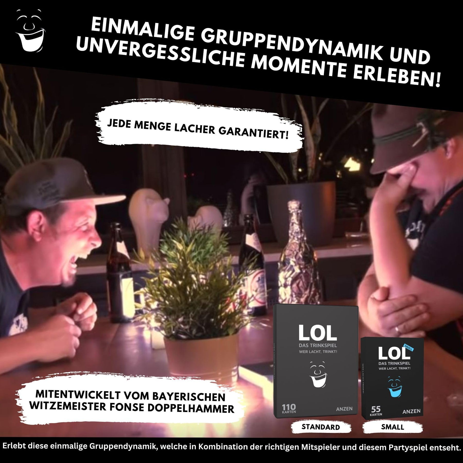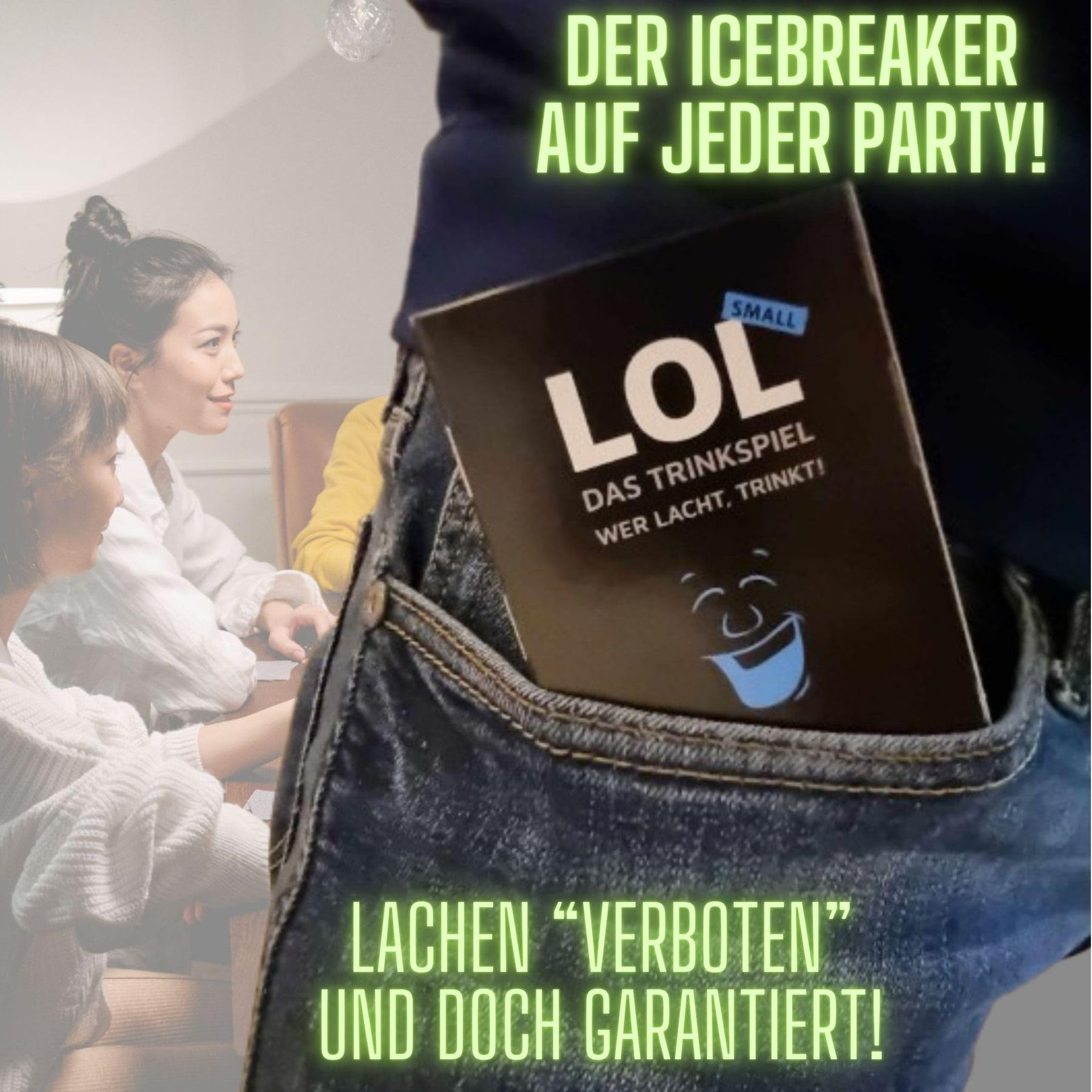 - 😂 LOL - das wahrscheinlich wirklich witzigste Trinkspiel aller Zeiten in der Small-Version - 55 Spielkarten mit absoluter Lachgarantie! Es gibt nur eine Regel: Wer lacht, trinkt (einen Schluck). Es ist egal wie ihr euch zum Lachen bringt.