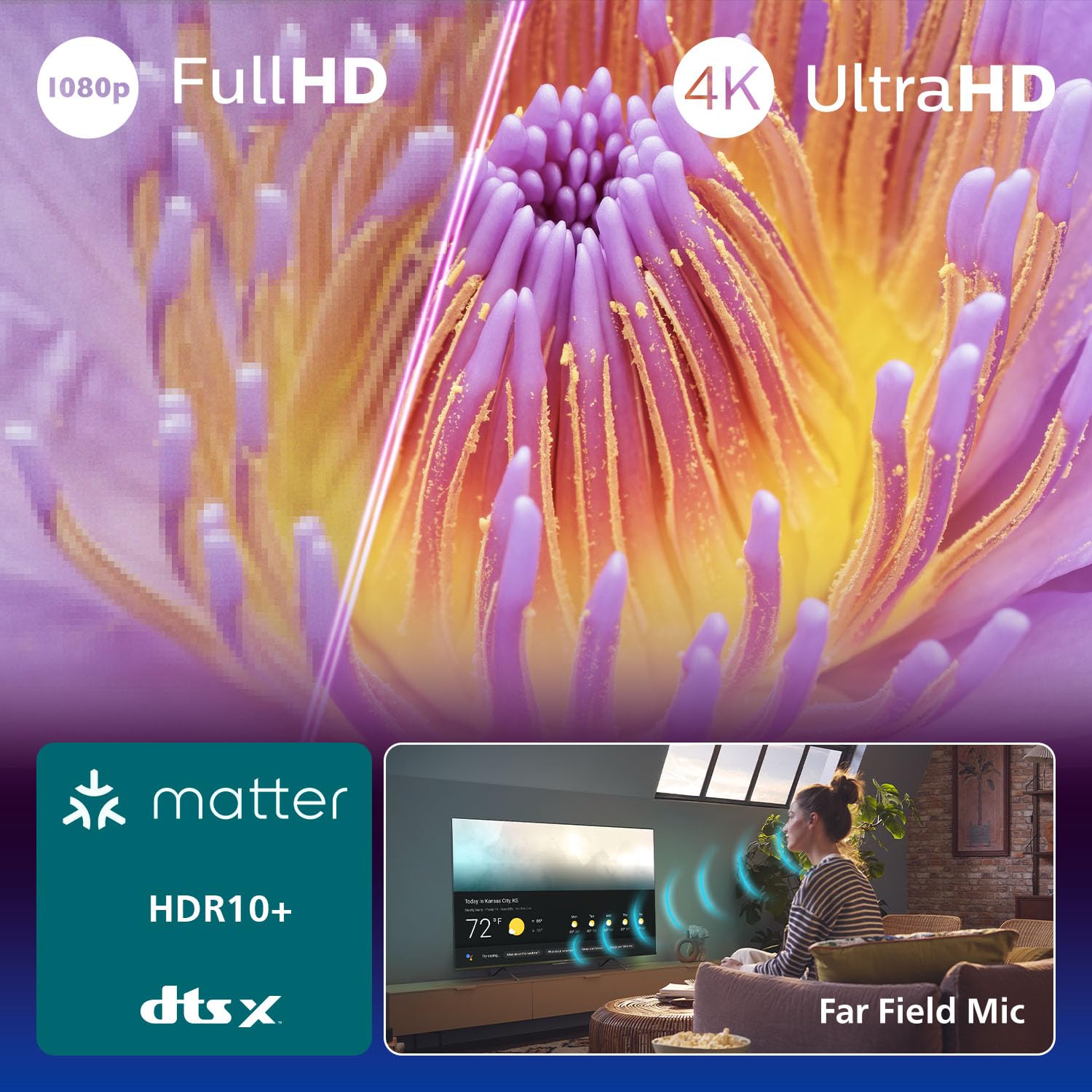 - KRISTALLKLARE 4K UHD RESOLUTION: Genießen Sie atemberaubende Details und Klarheit mit 4K Ultra HD. Jede Szene ist schärfer, jede Farbe lebendiger und jeder Moment noch immersiver für das ultimative Bilderlebnis