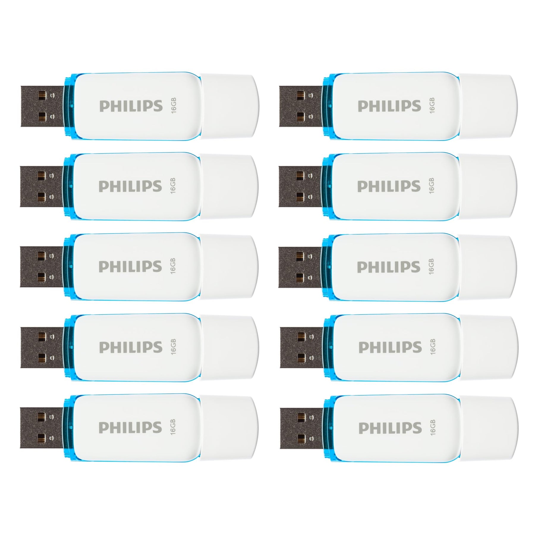 - Lieferumfang: Philips Snow High Speed USB 2.0 Flash-Laufwerk 10 x 16 GB, einfach und zuverlässig in der Anwendung, geeignet als Backup-Speicher, Weiß/Blau