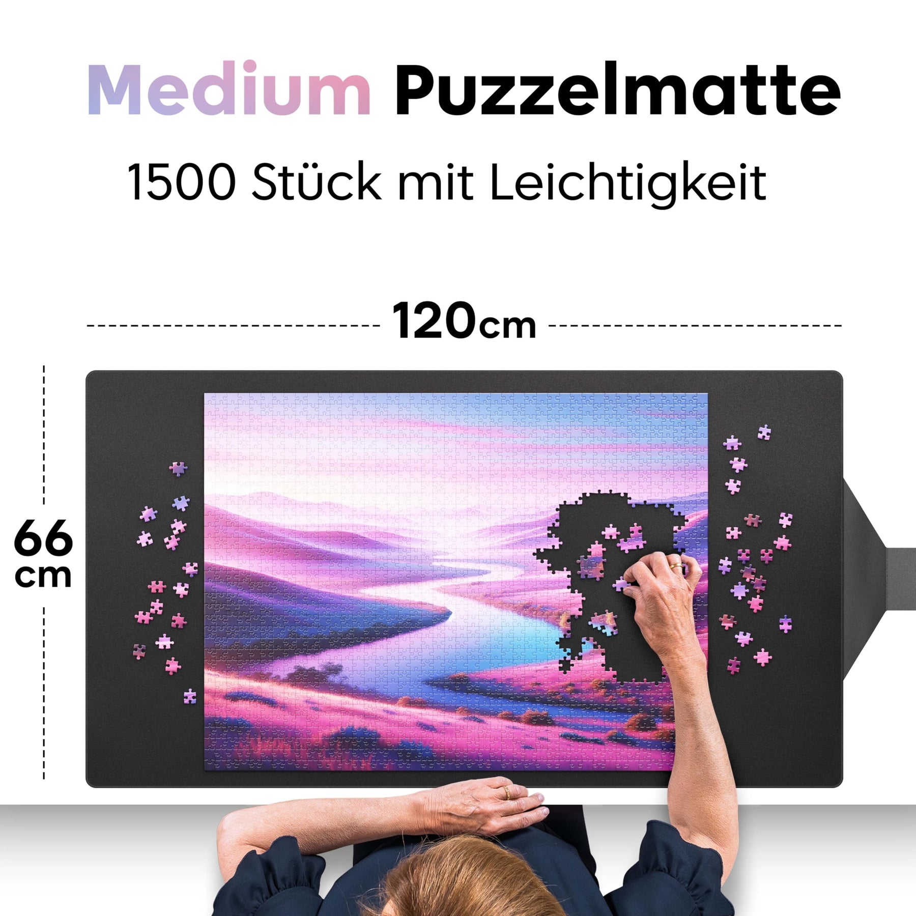 - Bis 1500 Teile - 66 x 120 CM - Mit 66 x 120 cm ist unsere Schaumstoff-Puzzlematte groß genug für den Spielspaß von 1500 Teilen! Verbreiten Sie die Puzzle-Stimmung auf jedem Tisch. Auf die Plätze, fertig, Puzzle!